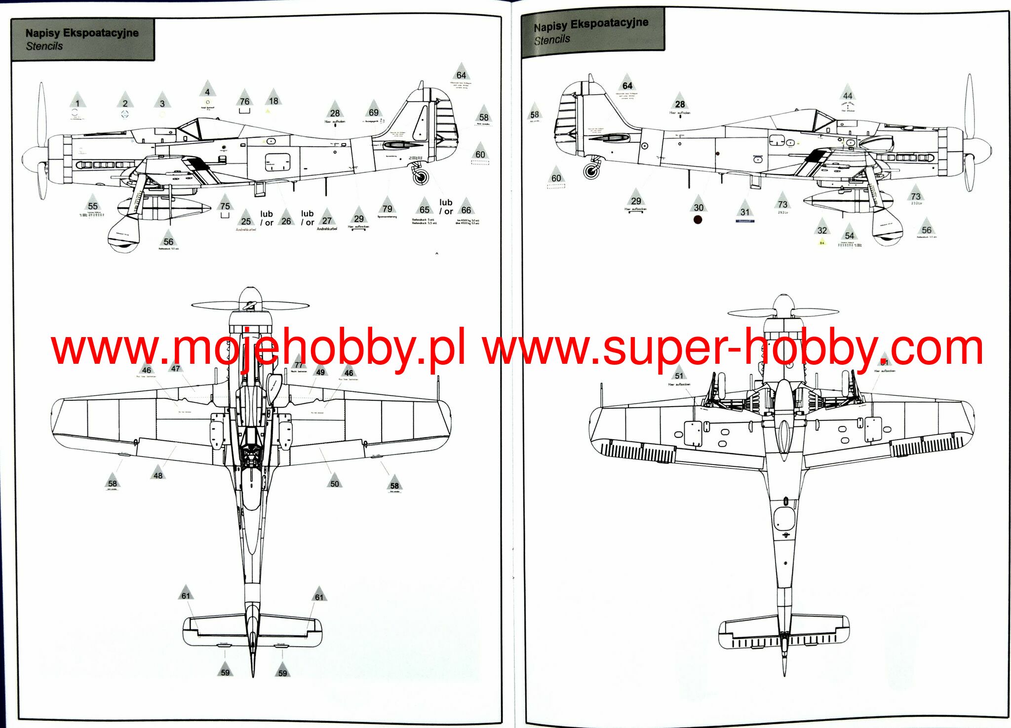 The Focke-Wulf Fw-190 is a German, single-engine, full-metal fighter aircraft with a covered cabin in the low wing design of the Second World War. The pilots considered the Fw-190 to be a better aircraft than the Messerschmitt Bf-109. A self-supporting low wing with a working Fw-190 coating was commissioned by the Luftfahrtministerium, assembled in the fall of 1937. Kurt Tank submitted two propulsion proposals - the first with a liquid-cooled Daimler-Benz DB 601 engine, and the second with the new BMW 139 radial engine. The latter was chosen, and the work started in the spring of 1938 was headed by Obering R. Blaser. The first prototype of the Fw-190V1 was ready in May 1939, and it was flown in Bremen on June 1, 1939 by Captain Hans Sander. The second prototype, the FW-190V2, armed with two MG131 and two MG17 machine guns - all 7.92 mm caliber, was flew in October 1939. To reduce aerodynamic drag, both were equipped with a tunnel air inlet in the propeller cap, but problems with overheating of the engine resulted in a return to the proven NACA shield design. Before the tests of these prototypes began for good, the decision was already made to replace the BMW 139 engine with a stronger, but longer and heavier BMW 801. It required many changes, strengthening the structure and moving the cabin back, which later became a source of problems with the center of gravity. The advantage was the removal of problems with exhaust gas permeation and overheating of the cabin interior due to its direct vicinity to the BMW 139 engine. The third and fourth prototypes were abandoned, and the Fw-190V5 with the new engine was completed at the beginning of 1940. Later, it received wings with a wingspan enlarged by one meter (from the original 9.5 m), which made it 10 km / h slower, but it increased the rate of climb and improved maneuverability. It was marked Fw-190V5g, and the variant with the shorter wing was Fw-190V5k. The first seven machines of the Fw-190A-0 information series had a short wing, the rest - a longer one. The first operational unit equipped with the Fw-190 - 6./JG 26 stationed at Le Bourget, declared its operational readiness in August 1941 and from the first meeting of the new fighter with the British Supermarine Spitfire, its advantage over them became apparent. During the war, a dozen or so versions of this great plane were created. The machines of the "A" version, along with a dozen or so modernizations, served as fighter planes. The versions marked "B" and "C" were only prototypes of high-altitude fighters intended for fighting strategic bombers, but they did not enter into serial production. The "D" variant, as the only one of the Fw-190s, was powered by the new 1750HP Jumo 213A engine and was the German response to the P-51 Mustang. The new engine extended the fuselage by several dozen centimeters. This variant also performed mainly hunting and high-altitude fighter tasks. Numerous variants of the "F" version were used as fighter-bombers as direct support of the battlefield. The "G" version played the same role as the "F" version, but had a greater range. During the entire war, over 20,000 copies of this one of the best fighters of World War II were produced. Technical data (version Fw-190A-8): length: 9m, wingspan: 10.51m, height: 3.95m, maximum speed: 656km / h, rate of climb: 15m / s, maximum range: 800km, maximum ceiling 11410m , armament: fixed-2 MG131 13mm machine guns and 4 MG151 20mm cannons (2 MG 151 / 20E cannons for the D-9 version).