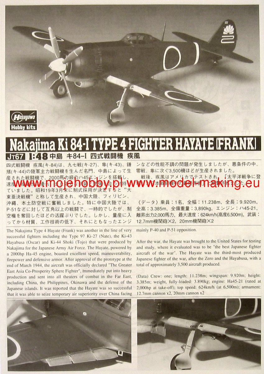 NAKAJIMA KI84-1 TYPE4 FIGHTER HAYATE (FRANK) (1/48) продается в 1 магазинах. Выберите подходящий Вам интернет-магазин и перейдите по ссылке «В магазин».