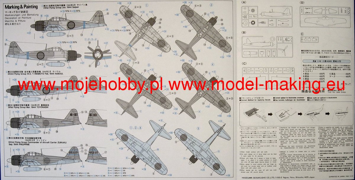 The Mitsubishi A6M Reisen (also known as Zero or Zeke) is a Japanese single-engine, full-metal low-wing fighter aircraft from the Second World War. The flight of the prototype took place on April 1, 1939, and it was put into service in the summer of 1940. The first prototypes were powered by a Mitsubishi Zuisei 13 engine, but from the A6M2 Model 11 onwards, the Nakajima NK1B Sakae 12 engine with 950 HP was used, which made the aircraft one of the best fighters early war period. New versions were created just before and during the war. One of the most famous was the A6M2 Model 21, a special version with folding wings designed for aircraft carriers, prepared at the beginning of the Pacific War, which became the basic Japanese on-board fighter. The next versions are A6M3 and A6M5, each of which had several versions. The first one used the 1130 HP Nakajima Sakae 21 engine with a compressor, which, however, meant an increase in weight and a decrease in range and maneuverability. Attempts were made to solve this problem in the A6M5 version by changing the exhaust system, changing the shape of the wings and resigning from folding them, which increased the top speed. The flight of this version took place in 1943 and was in production until the end of the war. It is worth noting that one of the most widely produced versions of the A6M5 was the A6M5C Model 52C Hei aircraft, of which nearly 5,000 were produced. "Zero" planes took part in the entire war in the Pacific, serving primarily as deck fighters, but also to a large extent as Army fighters. The "father" of this famous aircraft was the engineer Jiro Horikoshi, who relied on the experience gained from working on the M5A aircraft. He managed to develop a very maneuverable plane, with excellent aerodynamic properties, perfect for combat and with a large range. However, this was achieved at the expense of armor and the lack of self-sealing fuel tanks. What's more, due to the lack of aircraft engines with a power comparable to American machines, every year of the war, "Zero" from the "supercar", from 1943, evolved towards the weaker rival P-51, P-47 or F-4 or F- 6. It also turned out to be a machine vulnerable to damage and very vulnerable to fire. However, this does not change the fact that the Allies, until 1943, did not have an aircraft that would be able to compete with the A6M Zero. Technical data (A6M2 model 21 version): length: 9.06m, wingspan: 12m, height: 3.05m, maximum speed: 533km / h, rate of climb: 15.7m / s, maximum range: 3105km, maximum ceiling 10000m , armament: fixed - 2 20mm Type 99-1 cannons and 2 7.7mm Type 97 machine guns, suspended - up to 250 kg of bombs.