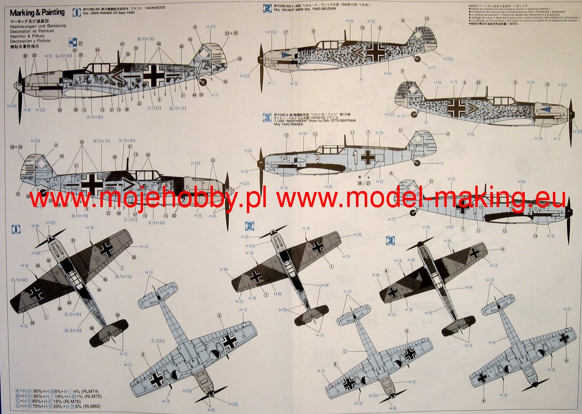 The Messerschmitt Bf-109 is a German metal-structure single-engine fighter in a low wing configuration with a classic tail. It turned out to be the basic and most produced Luftwaffe fighter during World War II. The flight of the prototype took place on May 29, 1935, and serial production continued in the years 1936-1945. In total, it is estimated that a total of about 35,000 Messerschmitt Bf-109 fighters of all varieties were produced, many of which ended up in the Czech and Israeli air forces after the war. The roots of the Bf-109 go back to the competition announced in 1933 by the Luftwaffe for a new fighter plane. In competition with the He-112, the Bf-109 project initially lost, but thanks to Willie Messerschmitt's intrigues, the project could continue and eventually he was the winner of the competition, becoming the Luftwaffe's primary fighter. Several main variants of the Bf-109 were developed in the course of production. The first pre-production series was the Bf-109B (Berta) with different versions of the Junkers Jumo 210 (A or Da) engine. They were tested in Spain from 1937 during the Civil War. The next version is the Bf-109C (Caesar). They had a different engine than the B version, and extensive armament consisting of two 20mm and 2 HP 7.92mm cannons. These machines also fought in the skies of Spain. The third version is the Bf-109D (Dora) with the Junkers Jumo 210 Da or Daimler-Benz DB 600 engine. It fought in the September campaign, but at the turn of 1939/1940 it was replaced by the E version. The most famous model was the Bf-109E (Emil) with a Daimler-Benz 601A or N engine. It was the first to use a three-blade, not a two-blade propeller. Bf-109E fought in the French campaign, over England, and in North Africa and on the Eastern Front. The ace who started his career on the Bf-109E was the famous Adolf Galland. The next version is the Bf-109F (Friedrich), which, according to the German pilots, was the most aerodynamically perfect. It sowed the changed shape of the fuselage, wings, cabin fairings, but no new engine was used. It was put into service at the turn of 1940/1941. As part of the development of the design, further Bf-109 specifications were developed, of which the G (Gustav) version was produced in the largest number of copies. The most important change increasing the machine's performance was the installation of a new 12-cylinder Daimler-Benz DB605A engine with 1475HP. The armament of the Bf-109G was a pair of 13mm machine guns located in the fuselage in front of the cockpit fairing, and the MG151 20mm or heavier MK108 30mm cannon. The last mass-produced version was the Bf-109K (Kurfirst), which production started in October 1944. A Daimler-Benz DB 605DB or DC unit was used as the engine. The Bf-109K was the fastest version produced during World War II, reaching up to 730 km / h. Apart from that, two versions were created - H and Z, but they were rather experimental versions and their mass production did not start. Subsequent improvements in propulsion and armament made the Messerschmitt Bf-109 one of the most dangerous fighters of World War II, and at the same time showed the great potential of the slightly angular airframe created by Willi Messerschmitt. Technical data (version Bf-109 G-6): length: 8.95 m, wingspan: 9.92 m, height: 2.6 m, maximum speed: 640 km / h, rate of climb: 17 m / s, maximum range: 850 km, maximum ceiling 12000m, armament: fixed - 2 MG131 13mm machine guns and 1 MG151 20mm cannon, suspended - 250 kg bombs, or 2 Wfr missile launchers. Gr. 21.