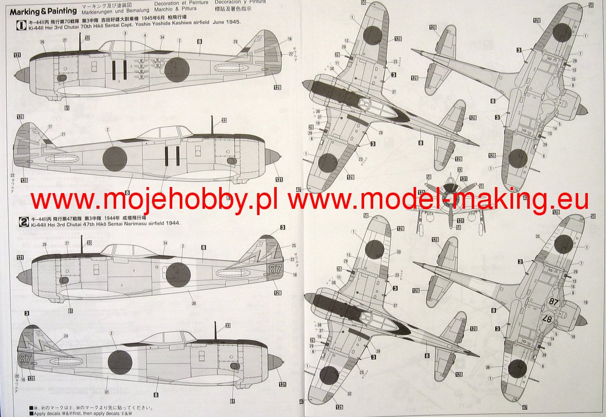 The Nakajima Ki-44 Shoki is a Japanese, single-engine, metal, semi-shell, low-wing interceptor from the Second World War. The flight of the prototype took place in August 1940, and the entry into the line units took place in 1942. Known under the Allied name Tojo. During the war, three versions of the Ki-44 were created. The first one, designated Ki-44-I, was powered by a Nakajima Ha-41 engine with a capacity of 1200 HP. Only 40 copies of this version were produced. The next one was called Ki-44-II, had a new engine with more power and the on-board armament was changed. Initially, it was used in the fighting over Burma, Malaysia and Sumatra, but quickly found its way into the defense units of the home islands. The last, produced in small numbers, was the Ki-44-III version with the new Nakajima Ha-145 engine. All versions of the Ki-44, despite their considerable maximum speed, were not liked by the pilots, especially because of their low maneuverability and difficult piloting. They were effective against bombers, but had big problems with escort fighters. Technical data (version Ki-44-II): length: 8.84m, wingspan: 9.45m, height: 3.12m, maximum speed: 605km / h, maximum range: 1700km, maximum ceiling 11200m, armament: fixed- Four 12.7mm machine guns.