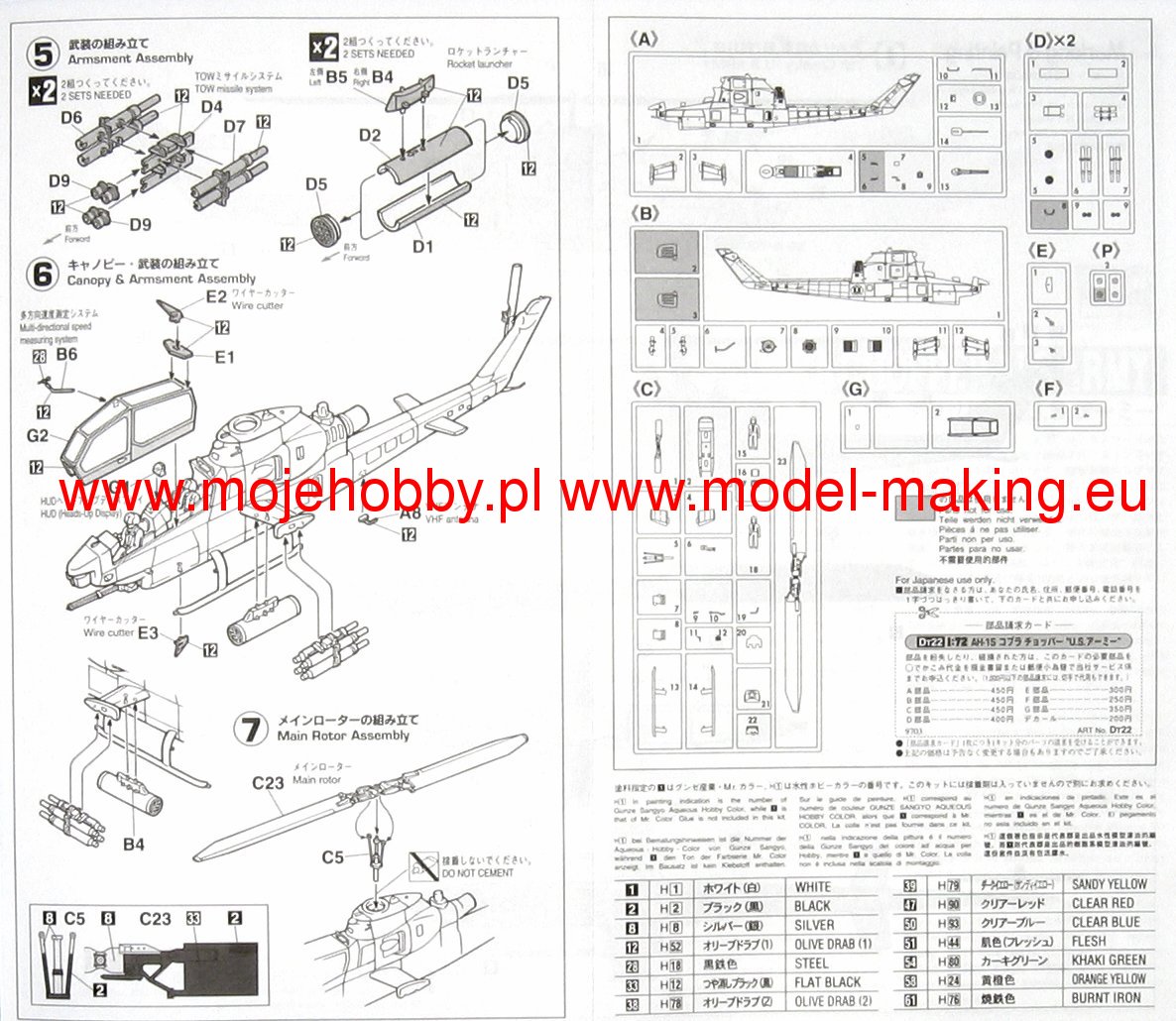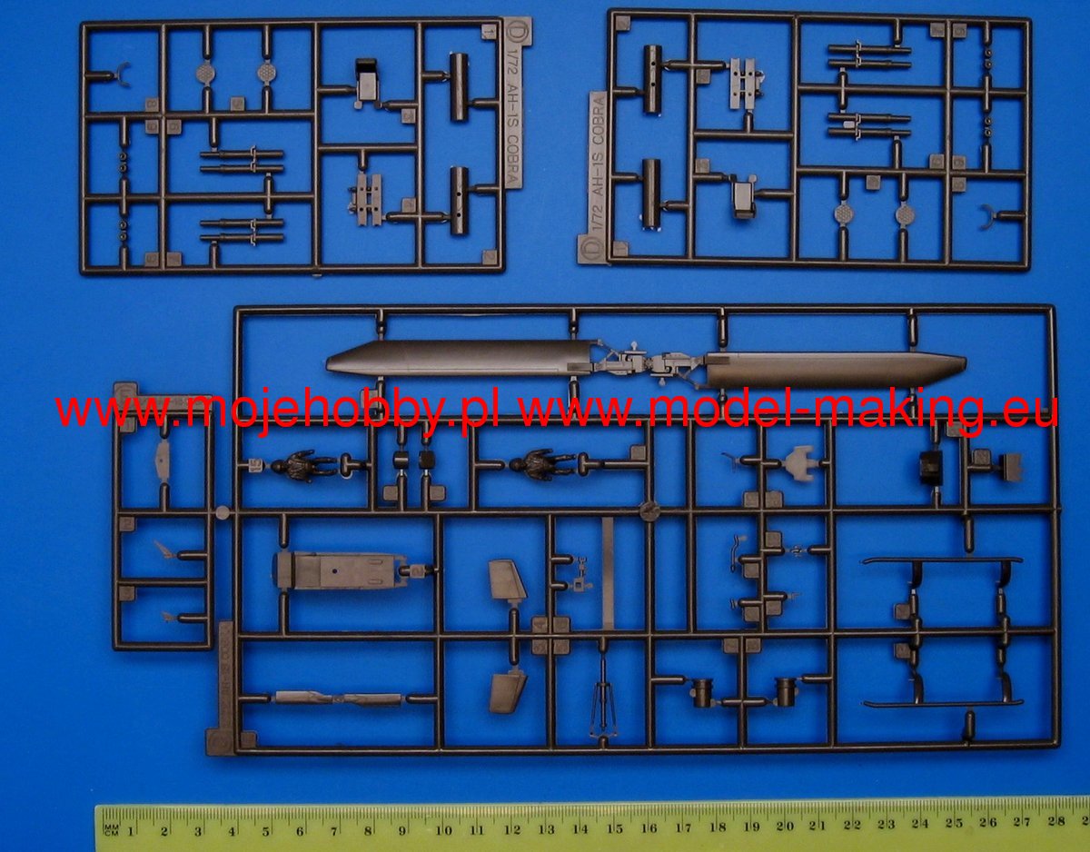 The AH-1 Cobra helicopter (Bell 209) is an attack helicopter in the classic layout, using many components of its "big brother" UH-1 Huey. The first flight of the AH-1 prototype took place on September 7, 1965 and the helicopter entered mass production in the same year. During the Vietnam War, 1,126 machines of the G model were produced, of which 279 were lost in combat. Due to the very high reliability of the structure, small side profile and good performance, the helicopter remains in service to this day in the US Marine Corps. The AH-1 allowed the US Army to fully implement the theoretical assumption of airmobile infantry ("air cavalry") through the fire support of landing infantry units. Today, the AH-1 Cobra is primarily used against an armored celon. From 1965, several versions of this successful helicopter were created, including: AH-1G (basic version), AH-1J (two-engine version), AH-1Q (version armed with TOW missiles). Technical data: Top speed: 333 km / h; maximum range (depending on version): 507-574km, armament: fixed-1 20mm M197 three-barrel cannon, slung rockets, guided missiles, unguided missiles and cannon pods.