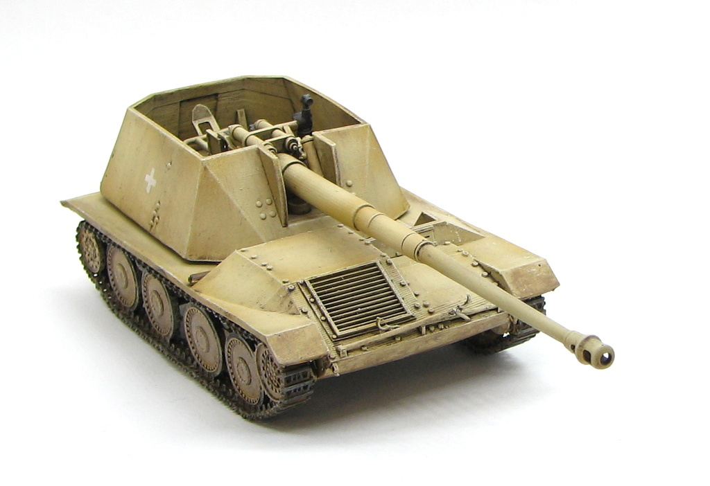 Waffenträger 88mm PaK 43/3 is a German prototype tank destroyer from the end of World War II. The prototypes of the car were probably created in 1944. It is assumed that the total length of the car was approx. 7.3 m, with a width of approx. 2.45 m and a height of approx. 2.4 meters. The weight of the car would probably be around 11-12 tons. The vehicle was armed with a single 88mm PaK43 / 3 gun. Due to the increasing quantitative advantage of the Soviet armor on the Eastern Front, in 1943 the German army decided to develop a de facto light tank destroyer, which was to eliminate this Soviet advantage. From the very beginning, it was assumed that the new car would be as simple as possible in construction and design, the crew compartment would be protected only to a marginal extent, and the vehicle would enter production as soon as possible. These requirements, moreover, were met by the car's design developed by a small, well-known engineer, Günter Ardelt. Interestingly, however, the decision to mass-produce it was probably not made until November 1944. It is also difficult to say something about the number of cars produced. It is highly probable that a certain number of them took part in the 1945 Berlin battle.