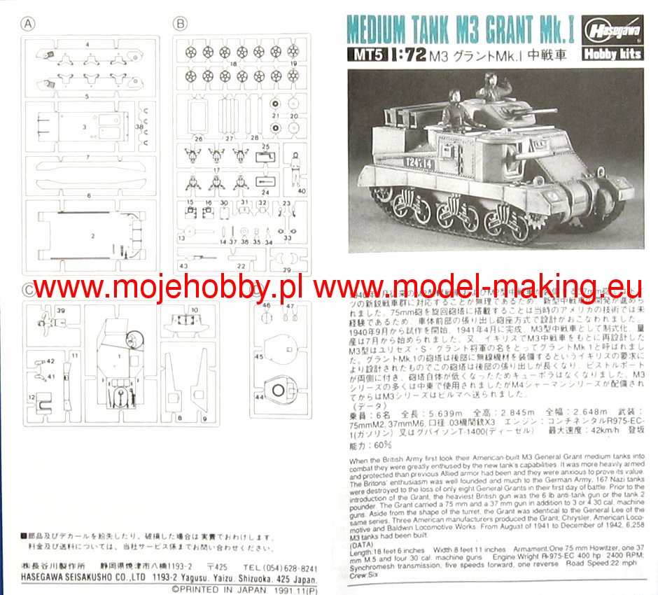 MEDIUM TANK M3 GRANT MK.I hasegawa 1/72
