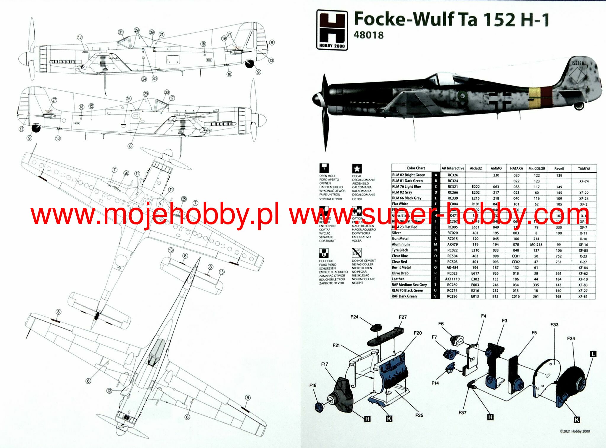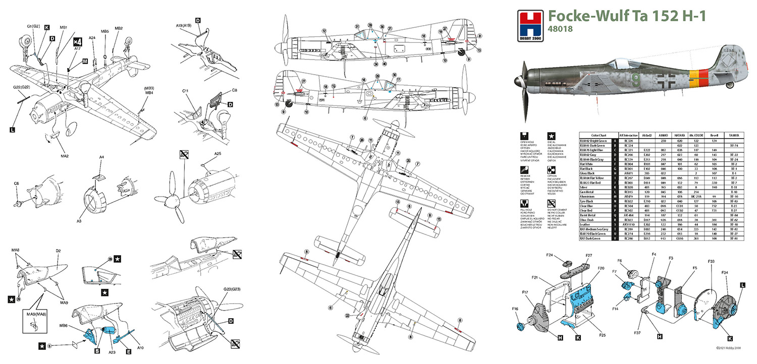 The Focke Wulf Ta-152 is a German, single-engine, all-metal, low-wing interceptor from the end of WWII. The prototype flight took place on July 12, 1944, and it was delivered to the line units in January 1945. The Ta-152 was a response to the Allied bombing raids over the Third Reich and was designed to fight heavy bombers and escort fighters, mainly with P-51 and P -47. Despite its external similarity, it was not another version of the Fw-190, but a completely new aircraft, but using many components from the Fw-190. The role of the drive unit was performed by the Jumo 213-1 engine with a take-off power of 1880KM and a maximum of 2250KM. Originally, it was planned to create the entire Ta-152 family with hunting, fighter-bomber and reconnaissance functions, but only the Ta-152-H version, which was a classic fighter, was mass-produced. Due to the Allied air raids and the worsening supply situation, only 67 Ta-152s were produced. During the short combat service, the Ta-152 turned out to be a machine at least equal to the performance of the American machines, and even better on several planes (shorter turning radius, better climb). Technical data: length: 10.82m, wingspan: 14.44m, height: 3.36m, maximum speed: 750km / h, climb speed: 16.7m / s, maximum range: 1500km, maximum ceiling 13500m, armament: fixed - a single 30mm cannon and two 20mm cannons.