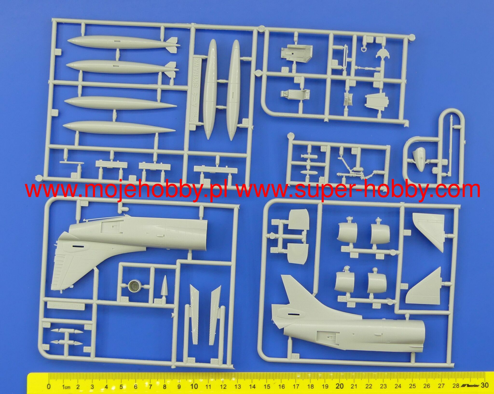 The McDonnell-Douglas A-4 Skyhawk is an American ground attack aircraft, the prototype of which was first flown in 1954. During the prototype trials in 1954, it broke the record for horizontal flight speed in its class of aircraft. The A-4 is a single-engine machine with a low-wing structure with a delta wing, which during use was characterized by high durability and resistance to damage, which won the recognition of pilots. Various versions of the A-4 Skyhawk aircraft took part in the Vietnam War, the Middle East conflicts (1967 and 1973) and the Falklands War (1982). They played a decisive role in the 1967 war, serving in the Israeli Air Force. The production ended in 1979, and so far approximately 2,900 combat versions and approximately 600 training versions have been produced. During the service, numerous versions were created, of which the A-4A (the first mass-produced version), A-4F (enhanced electronics), and A-4G (training version) should be replaced. Fixed armament: 2 Browning Mk 12 cannons (20 mm caliber); Suspended equipment (depending on the version) weighing from 3720 kg to 4155 kg. The plane exported, min. to Argentina, Australia, New Zealand and Singapore. Technical data: Top speed: 1075 km / h; climb speed 28-43m / s, practical ceiling 14900m, maximum range: 3305km.