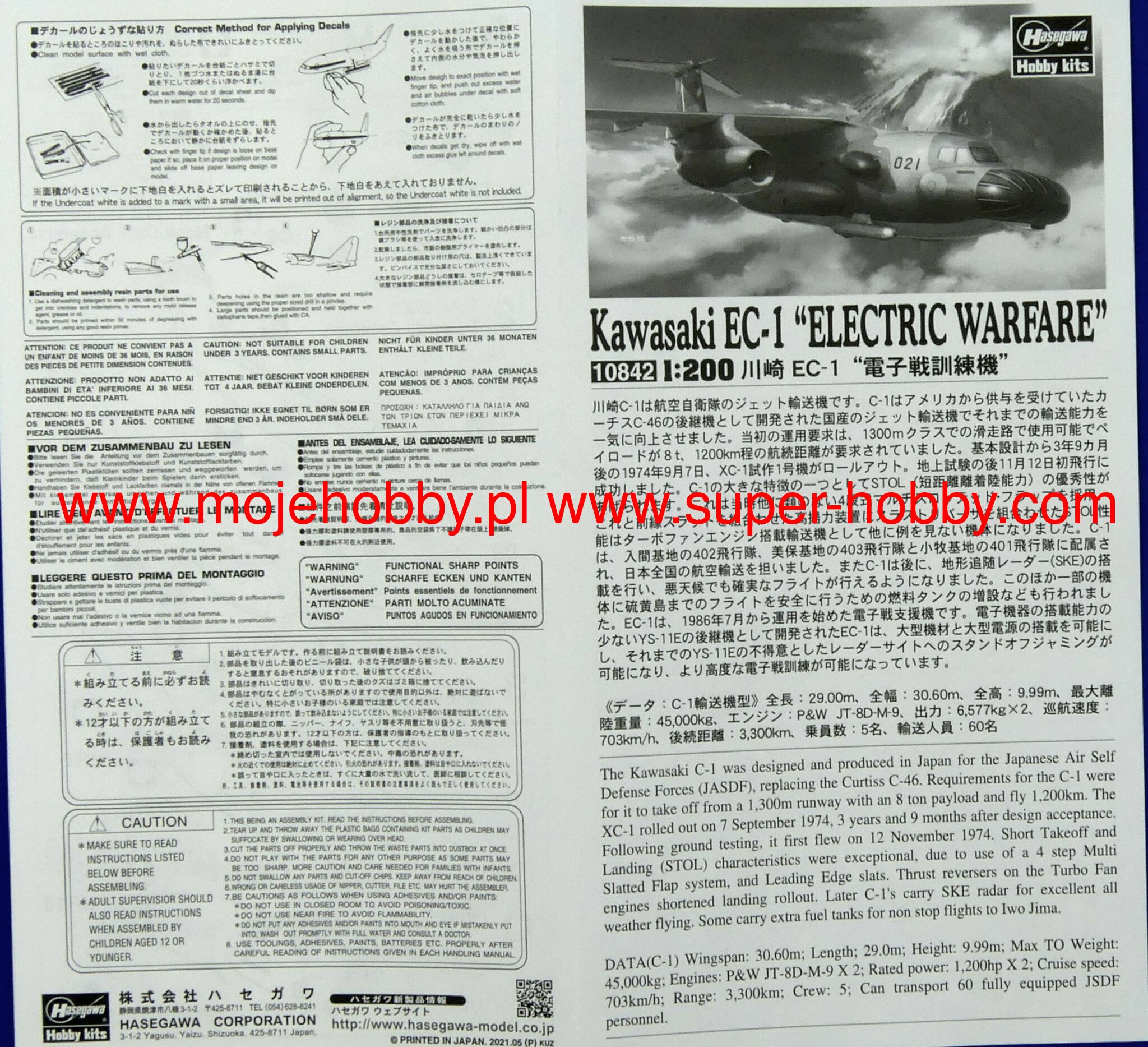 Kawasaki EC-1 (другое обозначение: E-1 ECM) современный японский самолет радиоэлектронной борьбы (WRE) с высокорасположенным крылом (хребтом). Длина машины составляет около 29 м, а размах крыла около 31 м. Привод обеспечивают два турбовентиляторных двигателя Pratt and Whitney JT8D-M-9, лицензированных в Японии, тягой по 64 кН каждый. Максимальная скорость составляла примерно до 800 км/ч, а дальность полета - примерно до 3300 километров. Самолет EC-1 был разработан в Mitsubishi Heavy Industries для нужд и заказов Сил самообороны Японии. Машина является, по сути, эволюционным развитием транспортного самолета Kawasaki C-1. Он разделяет общие конструктивные допущения, крылья, фюзеляж, двигатели и наиболее важные характеристики. Отличается, однако, формой передней части фюзеляжа, которая была перепроектирована, и ее форма была изменена. Также были добавлены стационарно установленные необходимые обтекатели и лотки для электронных устройств. Kawasaki EC-1 используется как в качестве самолета радиоэлектронной борьбы (РЭБ), так и для обучения экипажей таких машин. Можно предположить, что у него очень современные средства постановки помех и радиотехнической разведки.