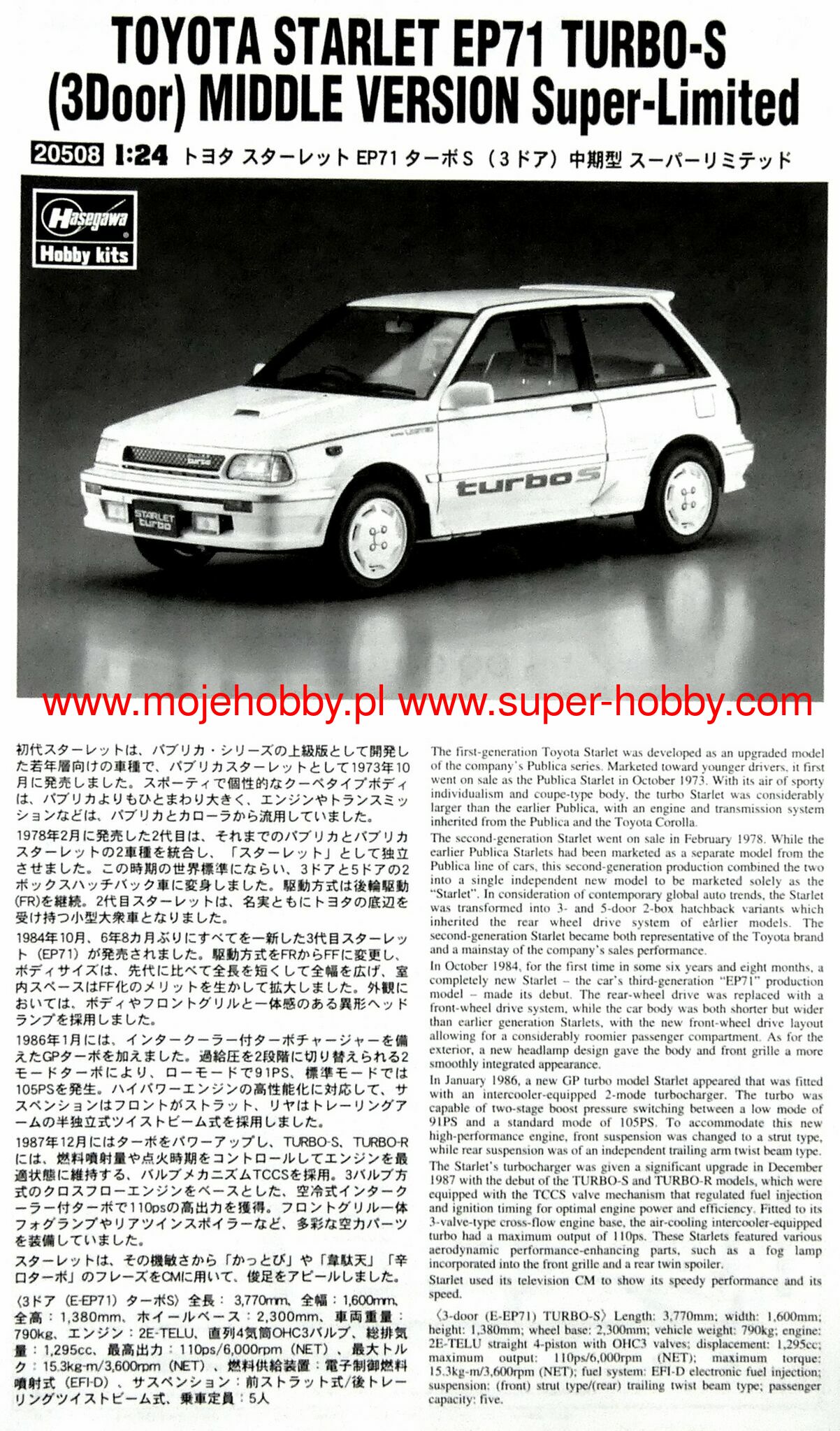 1/24 ТОЙОТА СТАРЛЕТ EP71 ТУРБО 1/24 TOYOTA STARLET EP71 TURBO (1/24) продается в 1 магазинах. Выберите подходящий Вам интернет-магазин и перейдите по ссылке «В магазин».
