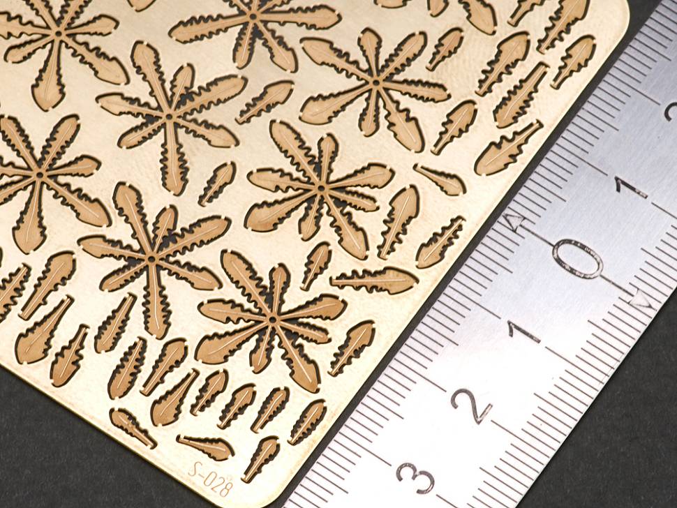 Природные элементы это одно из самых востребованных направлений в фототравлении. Имитация растительности в моделизме предполагает достаточно сложную и кропотливую работу, но именно фототравленка позволяет сохранять детализацию и значительно повышает качество оформления моделей, подставок и диорам. Латунные пластины набором листьев репейника размера M это 18 высокодетализированных аксессуаров, которые пригодятся при любом виде декорирования ландшафтов в тематике Европы и Америки. Данный набор используется в самых распространенных масштабах 32, 43, 54 и 60 мм и подходит для игровых и стендовых моделей. При работе рекомендуется отделять элементы от листа прямо перед их размещением, чтобы не потерять столь малые кусочки металла.