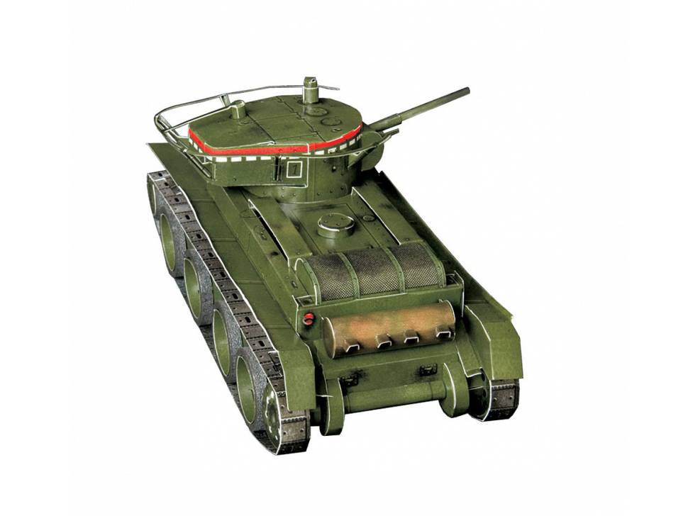Картонная модель танка выполнена в масштабе 1:35. Это модель для тех, кто понимает толк в аккуратной работе. Если поначалу вы отнесетесь к картону и его прочности с недоверием, то по мере сборки вы убедитесь, что картон это удивительный материал с огромными возможностями. Картон, выбранный для этой модели не самый толстый. Но это лучший материал для подобного моделирования. Гибкий картон можно плавно изгибать, скручивать в трубку, выполнять из него не только мелкие элементы, но также и крупные граненые формы. Башня танка вращается, орудийный ствол можно поднимать и опускать. Для сборки модели не понадобятся режущие инструменты или клей. Детали уже вырезаны и нужно просто вынуть их из листа картона и соединить между собой. Количество деталей - 52 Сложность сборки - 4 Размер - 15.5 x 6.5 x 6 см