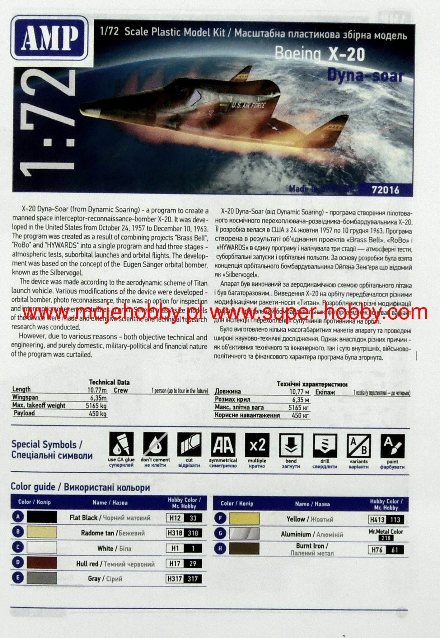 The Boeing X-20 Dyna-Soar was an American space shuttle project from the Cold War period. The plane was to be approximately 10.75 m long with a wingspan of 6.3 m. The maximum take-off weight did not exceed 5,150 kilograms. The propulsion would probably be provided by 2 AJ10-138 rocket motors with a thrust of 36 kN each, and the maximum speed would most probably exceed 25 Ma! Conceptual work on the X-20 Dyna-Soar plane began in 1955 and was aimed at creating a project of essentially a space bomber that would be carried into space by a launch rocket, then descended into the Earth's atmosphere and aimed at the chosen target as highest speed. The work accelerated after the launch of the Sputnik 1 satellite by the USSR in 1957, and the relevant implementation contracts were concluded with the following companies: Boeing (space plane) and Lockheed Martin (carrier rocket). Due to the incredibly increasing costs of the entire project and a large number of technical problems, the entire program was stopped in 1963. A prototype of the Boeing X-20 Dyna-Soar aircraft (spacecraft) has never been created.