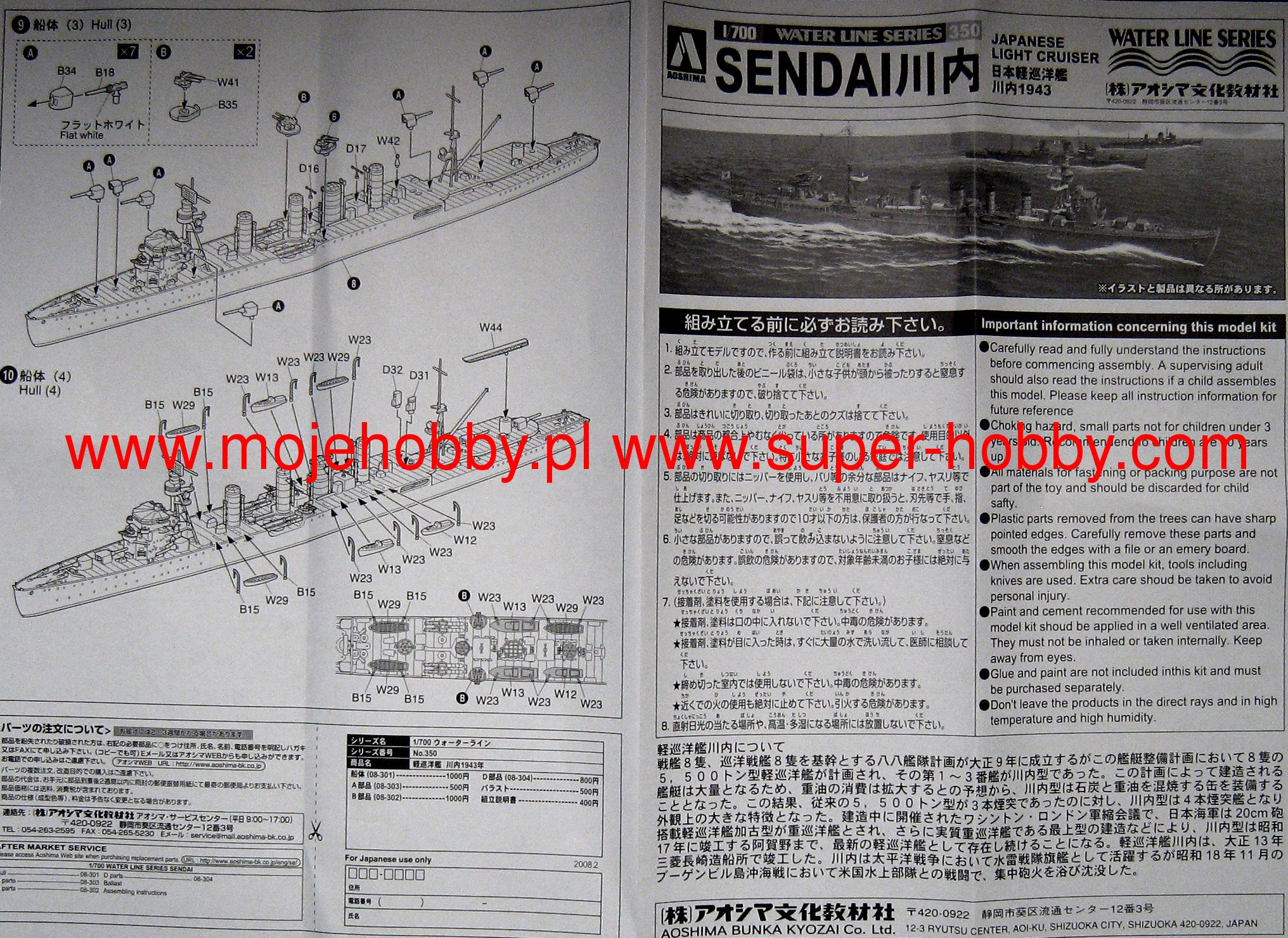 Sendai японский лёгкий крейсер, заложенный в 1922 году, спущенный на воду в октябре 1923 года и вошедший в состав Императорского флота Японии в апреле 1924 года. Корабль имел длину 152,4 м, ширину 14,2 м, водоизмещение 5200 тонн. Максимальная скорость крейсера Сендай составляла 34-35 узлов. На момент спуска основное вооружение составляло 7 140-мм орудий на одиночных позициях, а дополнительное вооружение, в том числе: 2 80-мм зенитных орудия и 8 610-мм торпедных аппаратов. Сендай стал первым крейсером этого типа, носившим такое же название Сендай. Крейсера этого типа изначально проектировались как т.н. Вожди или проводники флотилии эсминцев. Поэтому при их проектировании упор делался на высокую скорость в ущерб броне. Они же очень часто выступали флагманами таких команд. Боевая карьера крейсера Сендай во Второй мировой войне началась в декабре 1914 года1, когда он прикрывал японский десант в Малайе. На рубеже 1941/1942 годов служил конвоем конвоев в районе Малайи и Индонезии, а в феврале 1942 года принял участие в операции по захвату Суматры. Сендай лишь косвенно участвовал в битве за Мидуэй в июне 1942 года, не получив при этом никаких повреждений. С лета 1942 года участвовал в боях в районе Гуадалканала. Крейсер Сендай был потоплен 3 ноября 1943 года в ходе сражения в бухте Императрицы Августы.