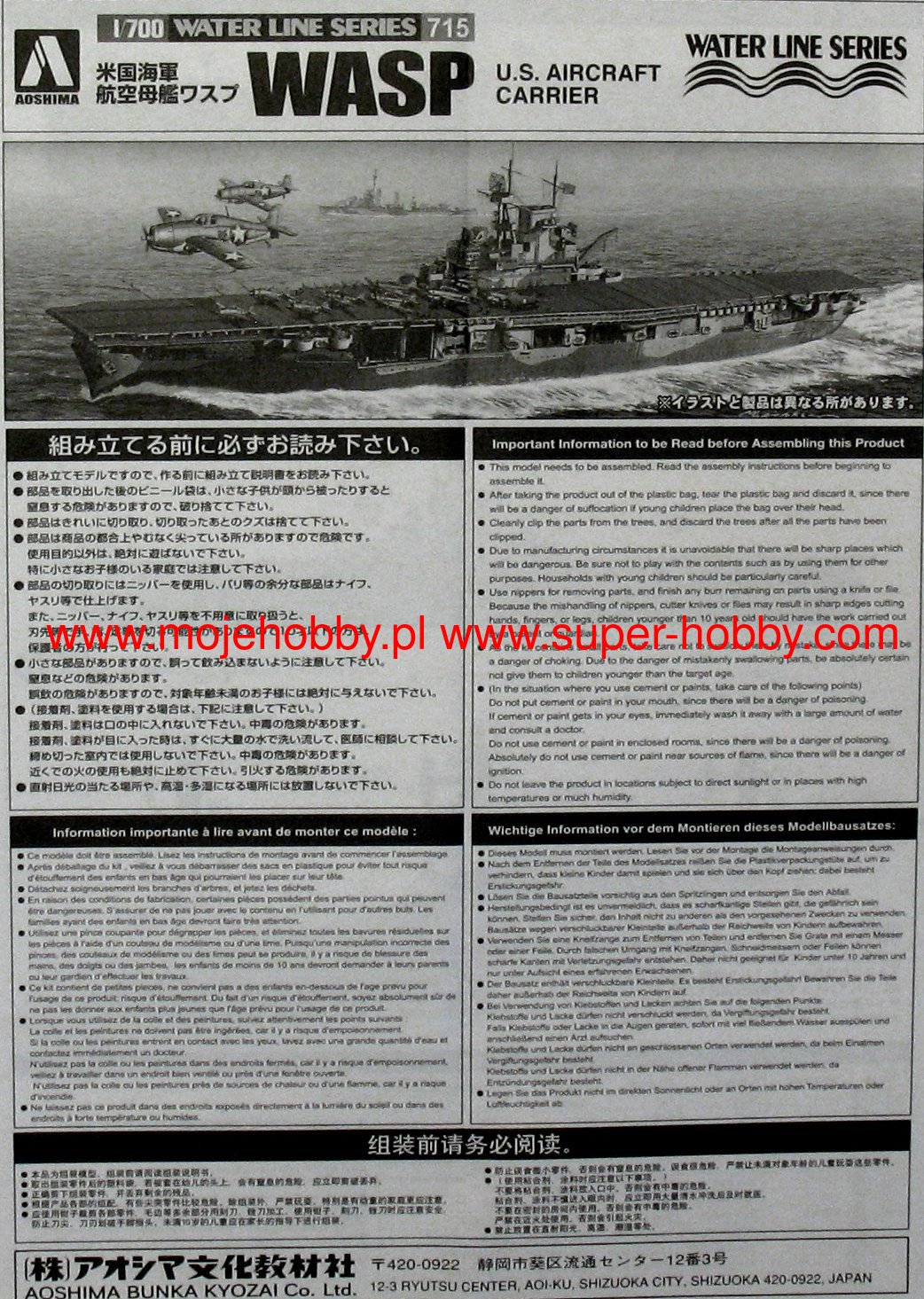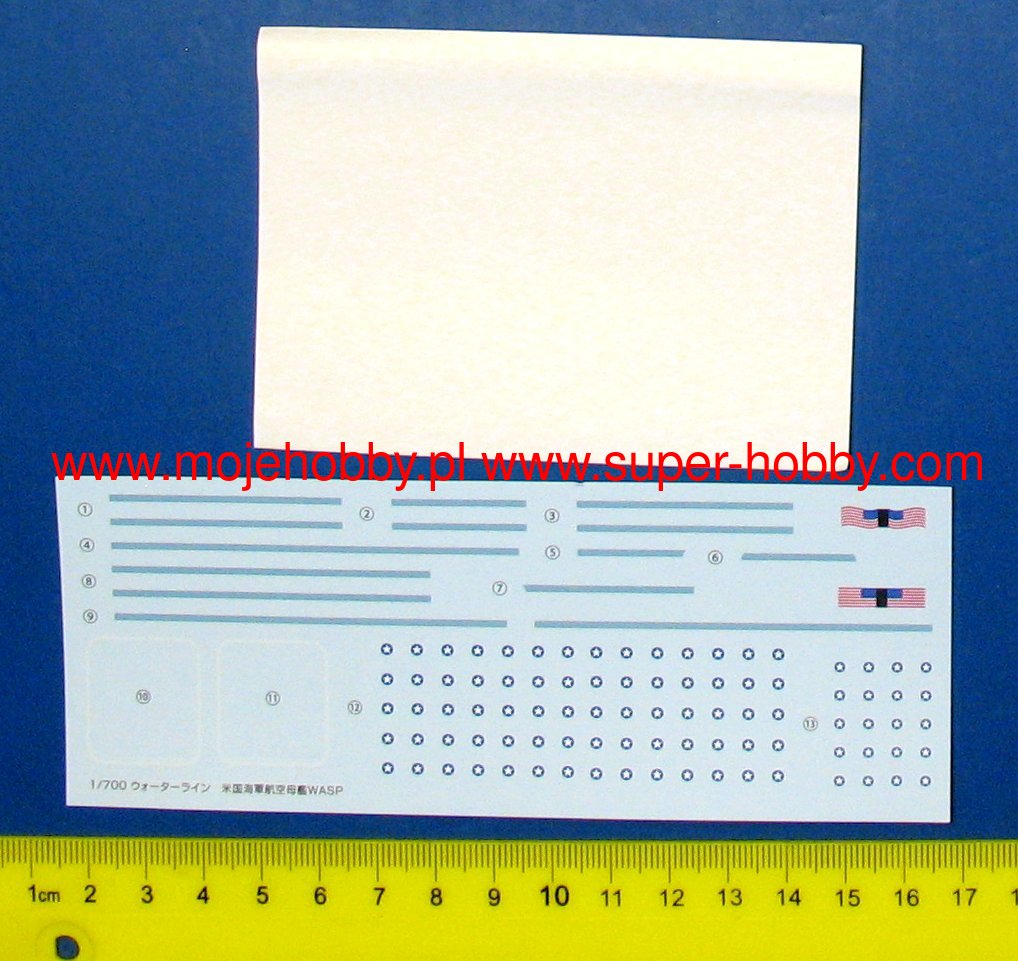 USS Wasp (CV-7) był amerykańskim lotniskowcem pod którego stępkę położono w 1936 r., wodowano w kwietniu 1939 r., a wcielono do służby w US Navy w kwietniu 1940 roku. Długość okrętu wynosiła 226 m, szerokość 24,6 m, a wyporność pełna w chwili wodowania 19.200 ton. Prędkość maksymalna lotniskowca USS Wasp oscylowała wokół 29-30 węzłów, a jego główne uzbrojenie stanowiło 80 samolotów pokładowych. USS Wasp był jedynym okrętem swego typu. Powstał jako pomniejszona jednostka klasy Yorktown, co wynikało z chęci dotrzymania zobowiązań traktatu waszyngtońskiego z 1922 roku. Lotniskowiec zatem był budowany w oparciu o doświadczenia wyniesione z eksploatacji okrętów typu Lexington. Co godne odnotowania, amerykańskim konstruktorom, pomimo wydatnie pomniejszonej wyporności udało się zachować możliwość bazowania niemal takiej samej liczby samolotów jak na okrętach typu Yorktown! USS Wasp w chwili wejścia do linii w US Navy został przydzielony do Floty Atlantyku, w ramach której dokonywał m.in..: transportów samolotów na Maltę na początku 1942 roku. Od połowy 1942 roku operował już jednak na Pacyfiku. Od sierpnia tego roku wspierał amerykańskie operacji w rejonie Guadalcanal oraz Wysp Salomona. USS Wasp został zatopiony w dniu 15 września 1942 roku w wynik ataku torpedowego japońskiego okrętu podwodnego I-19 w toku rejsu na Nową Kaledonię. Co oprócz modelu będę potrzebować do jego sklejenia?
