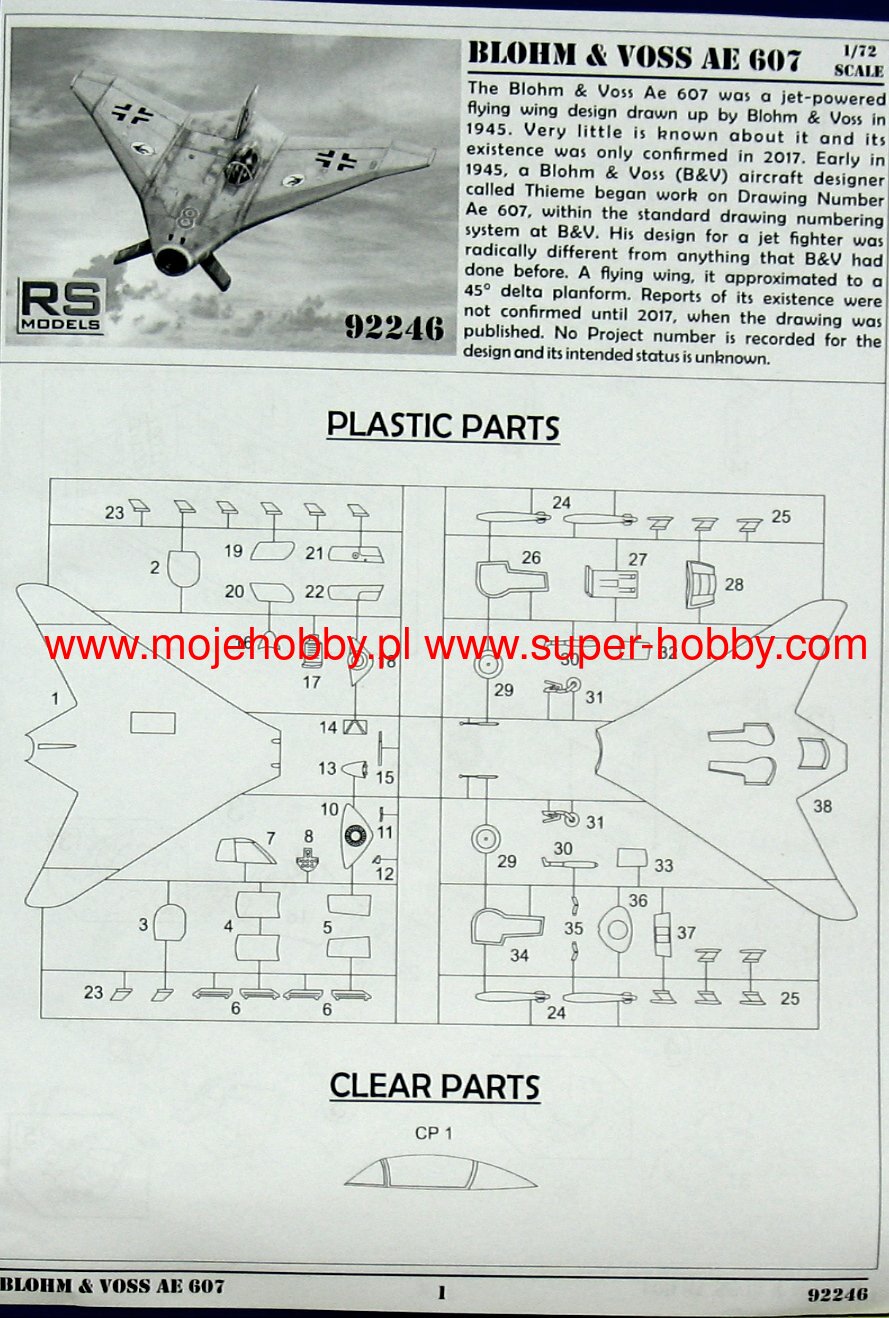 Blohm und Voss Ae 607 was a project of a German jet fighter from the end of World War II. Probably the length of the machine was to be about 7.4 meters with a wingspan of about 7.8 meters. The propulsion was likely to be provided by a single Heinkel-Hirth HeS-011 turbojet engine with a thrust of 12.75 kN. The on-board armament would probably consist of three 30 mm cannons. The Blohm und Voss Ae 607 project was created in early 1945 and was characterized by a highly avant-garde aerodynamic system involving the use of a flying wing system, which was to reduce aerodynamic drag, but also greatly improve the maneuverability of the aircraft. Moreover, the wings of the machine were supposed to bend downwards. It was also assumed that the engine would be placed in the fuselage, which would also reduce the air resistance of the plane. It is possible that the Blohm und Voss Ae 607 would also carry air-to-air missiles. Ultimately, however, the plane never came off the drawing board.