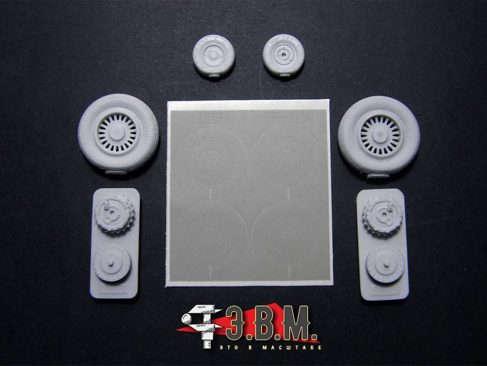 Набор колес шасси для модели самолета МИГ-25 в масштабе 1:72 Материал: полиуретановая смола. Применимость: универсальный набор. Состав набора: основное колесо - 2 шт, носовое колесо - 2 шт, деталировка левой ступицы - 1 шт, деталировка правой ступицы 1 шт, окрасочная маска - 1 шт, инструкция - 1 шт.