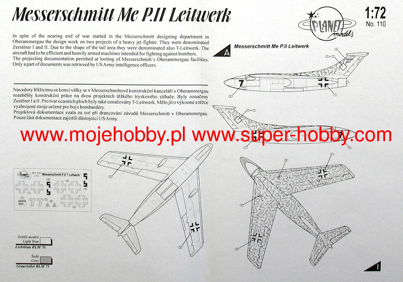 The Messerschmitt Me T (another term: Messerschmitt Zerstörer Entwurf II) was a German heavy jet fighter project from the end of World War II. The propulsion was probably to be provided by two Heinkel He S 011 jet engines. The on-board armament was probably to consist of two Mk.108 cal. 30 cannons. The machine was never tested, much less entered serial production. The Messerschmitt Me T project assumed the creation of a heavy jet fighter with a highly aerodynamic shape, with oblique wings and a T-shaped vertical stabilizer. The new machine was also to have a cockpit fairing integrated into the outline of the fuselage. It is worth noting that, unlike, for example, the Me-262, the engines were intended to be placed inside the fighter, and not in the under-wing nacelles, which would reduce air resistance. It was assumed that the Me T's main opponent was to be Allied strategic bombers. The plane never got past the loose design stage, and there are indications that some of the Me T documentation was seized by the US military.