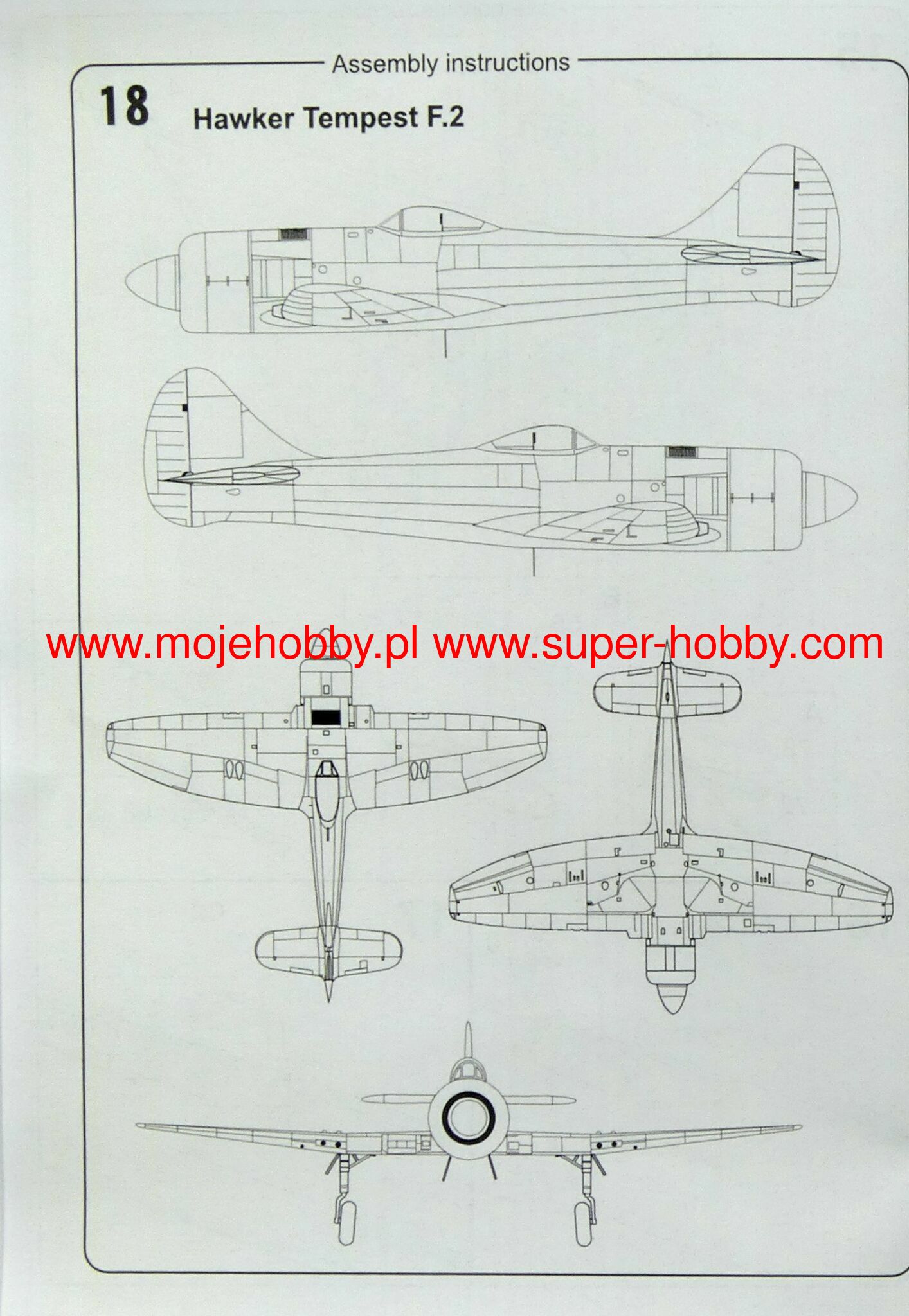 The Hawker Typhoon did not perform well as a fighter plane, but later served as a bombing fighter, especially when it was equipped with rocket launchers. High-altitude flight performance and climb were unsatisfactory, and in 1941 an attempt was made to counter this by using a wing with a thinner profile and elliptical contour. The engine radiator was moved from under the engine itself to the edges of the wing root, and the Napier Saber C.107C engine was selected as the drive source. As the new wing had a smaller capacity, it became necessary to install additional fuel tanks in the fuselage of the aircraft. The introduced changes were so big that at the beginning of 1942 the plane was named Hawker Tempest. The Tempest prototype flew in February 1943 and soon achieved a speed of 750 km / h at an altitude of 7,470 meters. The service of Hawker Tempest aircraft in the RAF colors began in April 1944. The wing that had them in stock took part in the preparations for the invasion of Normandy. This was prevented by the first V-1 attack, which took place on June 13. Tempests have been directed to combat this new threat. The achieved success can be best judged by the number of bombs shot down. Between June 1944 and March 1945, 481 kills were recorded on the Hawker Tempest machines account. Until the end of the war, the machines operated in Europe to support land forces. Particularly noteworthy are the 20 kills recorded on the German Messerschmitt Me-262 jet fighters. Throughout the war, the Hawker Tempest served in only three RAF squadrons: 3, 486 and 56. The only mass-produced version in the period 1943-1945 was the Mk.V model, interestingly two other versions (Mk.II and Mk.VI) entered production after 1945 and served until 1951. Technical data: length: 10.26m, wingspan: 12.49m, height: 4.9m, maximum speed: 695km / h, climb speed: 23.9m / s, maximum range: 1190km, maximum ceiling 11125m, armament: permanent - 4 20mm Hispano Mk.II cannons, sling - up to 454 kg of bombs or 8 RP-3 missiles.