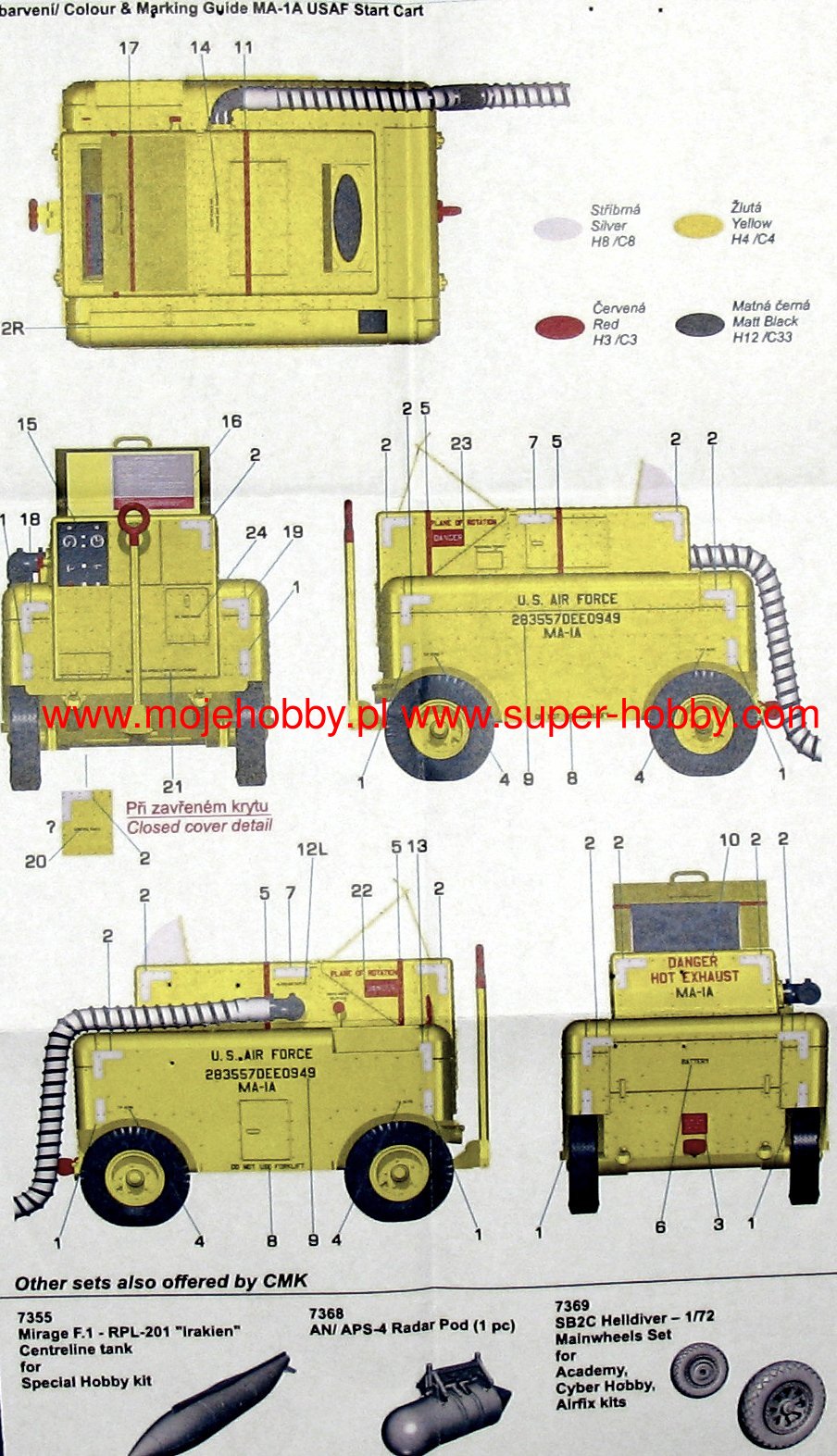The MA-1A Start Cart is essentially a mobile, American-made compressed air blower from the early Cold War period on a small four-wheel chassis. The device entered service in the early 1950s and some are still in service today. The presented device produced a stream of high velocity air which was supplied to the jet engine and accelerated its proper start-up. The MA-1A could, however, also serve as a device to facilitate the start-up of the turboprop engine. A small turbine was used to generate the air stream, constituting the "heart" of the MA-1A Start Cart. The device was used, among others, to start-up machines such as: North American F-86 Saber, Lockheed T-33 Shooting Star, Northrop T-38 Talon, but also Lockheed C-130 Hercules.