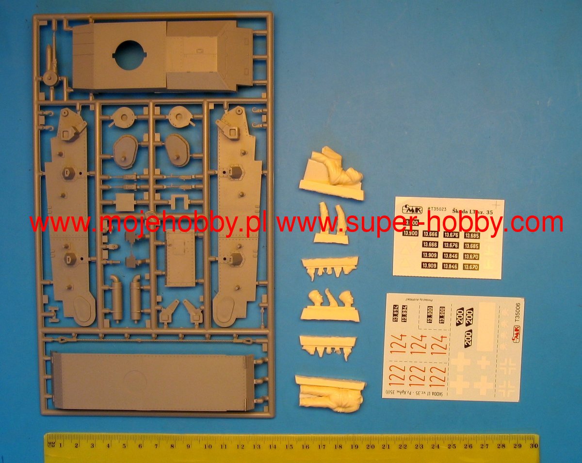 LT vz. 35 or Panzerkampfwagen 35 (t) was originally a Czechoslovakian and later a German light tank from World War II. The first prototypes of the vehicle were created in 1935, and serial production continued in the period 1936-1939, ending with the production of about 430 vehicles. The tank was powered by a single 120hp Skoda T-11 engine. It was armed with 1 KwK 34 (t) L / 40 37mm gun and 2 MG35 (t) or MG 37 (t) 7.92mm machine guns. LT vz. 35 was created in response to the demand announced by the Czechoslovak army in 1934 for a new light tank armed with a 37mm cannon. The production was undertaken by Skoda plants in cooperation with CKD. Tank LT vz. 35 turned out to be a better design than the German Panzer I and Panzer II, but it was troubled by problems with the cooling system, gearbox and - especially at the beginning of production - the suspension. Despite these imperfections, the tank was exported to Romania. Tank LT vz. 35 after Czechoslovakia was taken over by the Third Reich, it was taken over by the Wehrmacht under the name of Panzerkampfwagen 35 (t), but its production was not continued. The tank took part in the September campaign in 1939, in the French campaign in 1940 and in the initial period of the war with the USSR. However, from the end of 1941, it was withdrawn from service due to too weak armor and too weak main armament.