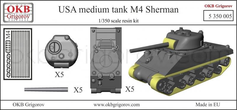 V350005 USA MEDIUM TANK M4 SHERMAN (5 PIECES) okb grigorov 1/350