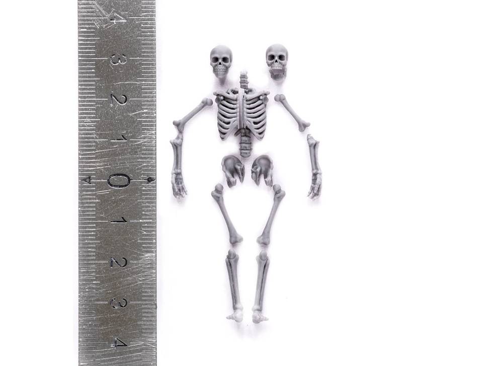 Данный набор позволит вам собрать скелет в любой мыслимой позе. Детализация и анатомические подробности максимально возможные для данного масштаба. Набор содержит скелет который состоит из 15 деталей из полиуретановой смолы и имеет разные варианты черепов. Для сборки рекомендуется дрель со сверлом 0,6 мм, проволока 0,5 мм для штифтов, суперклей и руки, растущие откуда надо.