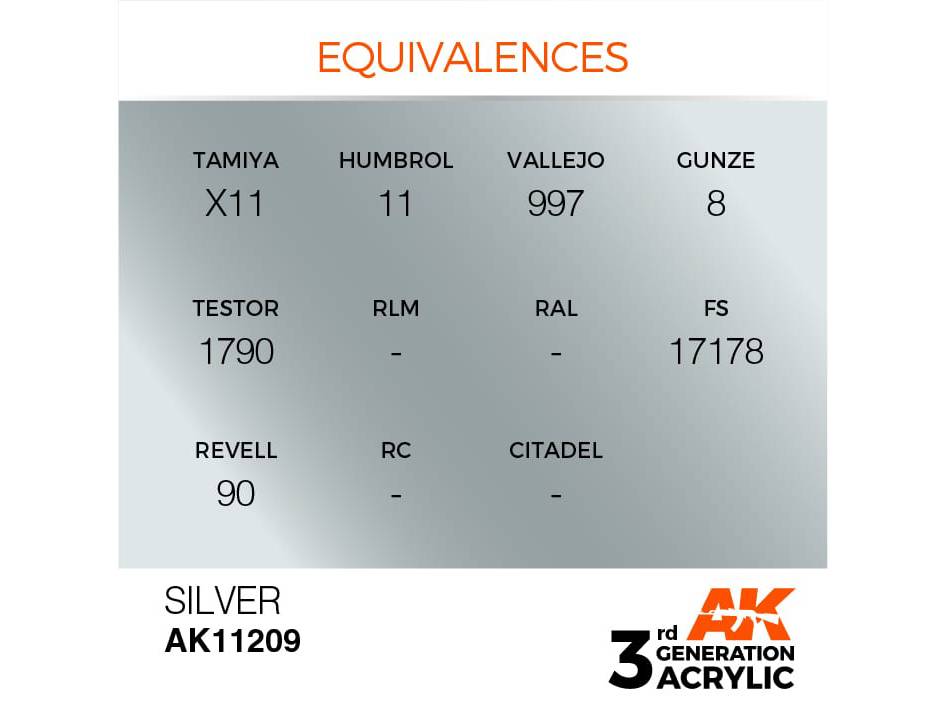 АКРИЛОВАЯ КРАСКА AK INTERACTIVE 3RD GENERATION METALLIC. SILVER. 17 МЛ