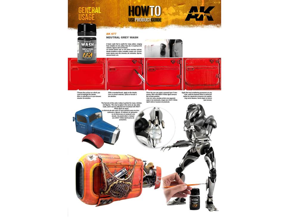 Базовая смывка, которая подходит для многих цветов, от металлического до красного, желтого, синего и т.д. Незаменима для любителей автомобилей, фигур и научной фантастики. Нанесите смывку на вашу модель и удалите излишки чистой кистью, смоченной растворителем для эмали.
