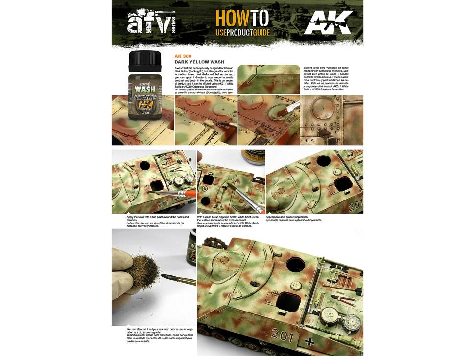 Данная смывка, специально разработана для немецкого темно-желтого (Dunkelgelb), но также отлично подходит для автомобилей средних тонов. Нанесите смывку на вашу модель и удалите излишки чистой кистью, смоченной растворителем для эмали.