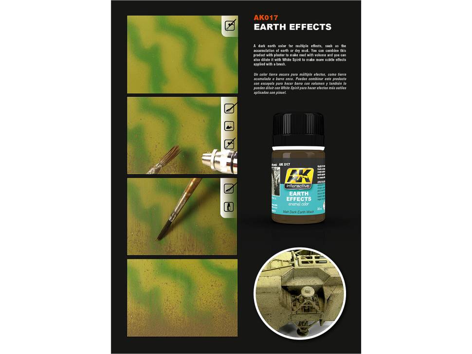 Эмалевая смесь, создающая эффект натуральной земли и грязи. Просто нанесите ее на колеса, гусеницы или корпус вашей модели, чтобы добиться максимально реалистичного результат. Можно смешивать с другими земляными цветами, что дает неограниченные возможности создания природных эффектов. Также можно смешать этот продукт с гипсом, чтобы грязь получилась более объемной. Перед использованием хорошо взболтать. После нанесения растушуйте смесь, используя широкую плоскую кисть, смоченную растворителем для эмали.