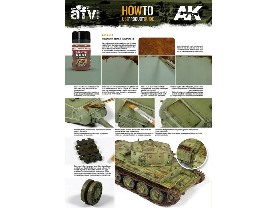 Эмалевая смесь оранжевого цвета. Идеальный продукт для воссоздания текстуры ржавчины среднего цвета на поверхностях автомобилей или аксессуаров. Когда смесь высохнет, она будет иметь тот же вид чешуек, что и настоящая покрытая коркой ржавчина. Отделка чрезвычайно аутентична и может сочетаться с другими тонами для большей реалистичности. Хорошо встряхните перед использованием. Нанесите тонкой кистью, и дайте краске подсохнуть примерно 10 минут. Затем возьмите плоскую кисть, смоченную растворителем для эмали, чтобы убрать излишки, смягчить эффект и создать естественный вид.