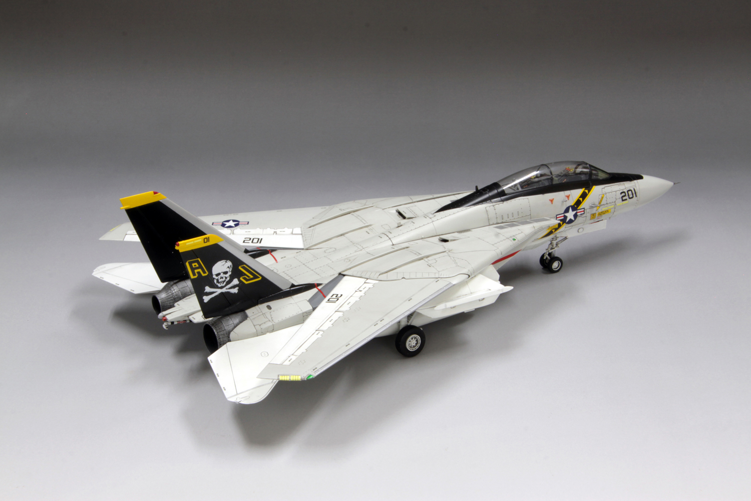 Designed as the U.S. Navy's primary fighter, the F-14 Tomcat could perform air superiority, escort, and strike missions and was undoubtedly one of the most sophisticated and technologically advanced aircraft ever to serve an aircraft carrier. The prototype machine was flown on December 21, 1970, and the first planes were delivered to the US Navy four years later. The last Tomcat planes were decommissioned only in 2006, which perfectly illustrates the high quality and great performance of this machine. The most innovative and characteristic solution for the F-14 are the wings with variable geometry. Controlled by computer or manually by the pilot, they can change their angle of attack from 20 degrees at minimum speed to 60 degrees at supersonic speeds. The changing geometry of the wings also allows for optimal positioning of the wings when maneuvering tightly, thanks to which this powerful aircraft exhibits amazing maneuverability. The heart of the Tomcat weapon system is the Hughes ANG-9 radar, usually cooperating with the AIM-54A Phoenix air-to-air missiles with a range of up to 180 km. Being able to track and attack more than one target is especially important. No less important element of the armament, as shown by the combat experience in the Vietnam War, is the cannon - in the F-14 mounted inside the M-61 Vulcan hull, firing up to 6,000 rounds per minute! Of course, you can also attach other types of weapons to the Tomcat, such as Sparrow, Sidewinder rockets or various bombs. The F-14 also owes a lot of its success to the excellent power unit in the form of a pair of Pratt-Whitney TF30 engines with a thrust of 9300 daN with afterburning. Technical data: Maximum speed: 2480 km / h, climb speed: 153 m / s, practical ceiling 17100 m, maximum range: 3200 km, armament: fixed - single, six-barrel 20mm M61-A1 cannon, suspended - up to 6580 kg cargo.