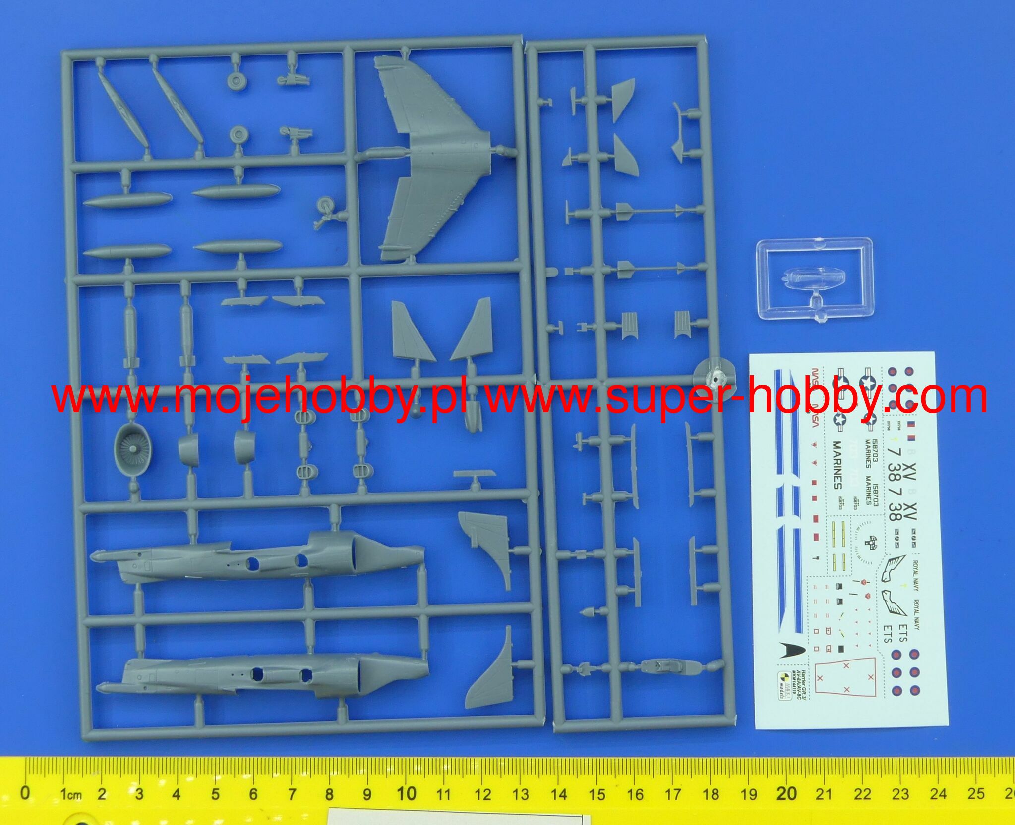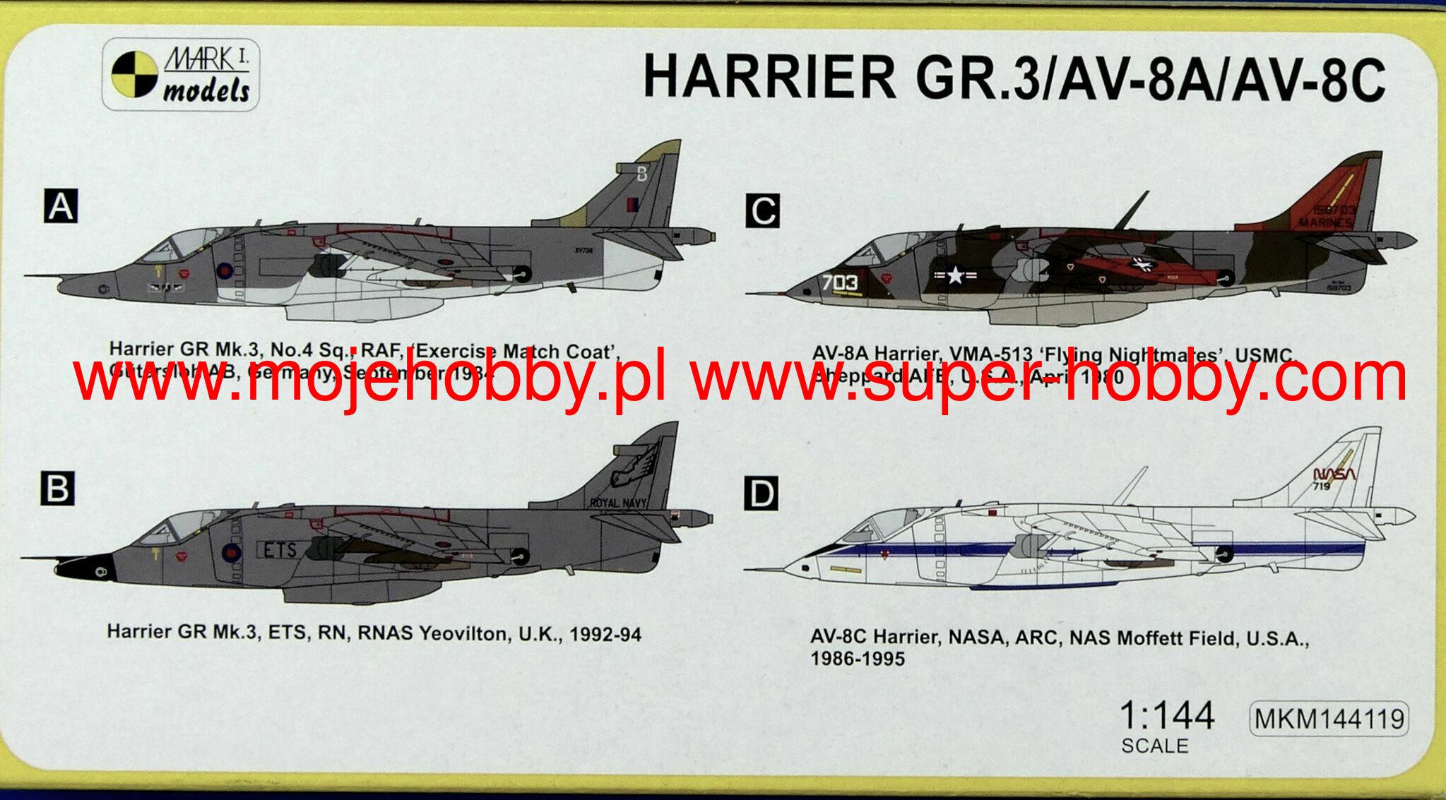 The BAe Harrier is a British single-seat V / STOL fighter, attack and reconnaissance aircraft with a duralumin, half-shell structure. The origins of Harrier's construction can be found in 1957, when Lord Sydney Camm of Hawker Aircraft and Dr. Stanley Hooker of Bristol Siddeley Engines started the construction of a tactical aircraft using the latest turbo-fan engine from Bristol plants, then known as BS.53. It was specially adapted to the vertical thrust vector ensuring the vertical take-off of a fixed-wing aircraft. Engine exhaust gases were directed to four staggered nozzles placed in pairs at the front and rear of the fuselage. The range of rotation of the nozzles exceeded 90 degrees, which allowed the exhaust gases to be directed directly rearward in normal flight, vertically downward for take-off and landing, or to any angle during the transition phase. Around the engine, Camm constructed a compact, conventional, high-wing metal airframe. In the forward part of the fuselage there was a one-person cabin, next to which there were two fixed, stationary air inlets for engines with a semicircular cross-section. The two-wheeled main and one-wheeled undercarriages are built in tandem in the central axis of the fuselage. The first of the six prototypes took off for the first time on October 21, 1960. After less than a year, a complete transition was made from vertical climb to horizontal flight and hover again. In February 1965, the UK government ordered six test aircraft. These were the first examples to be given the name Harrier. Apart from Great Britain, the only user of the standard Harrier aircraft is the Spanish Navy, where the aircraft are known as the Matador. To date, a dozen or so versions of the Harrier aircraft have been produced. Chronologically, the first was the Harrier GR.1 (an attack aircraft that entered service in 1969). Version T.3 was created quickly, i.e. a two-person school version of Harrier GR.1. The next version is the Harrier GR.3, which is the most modern assault version of this aircraft equipped with Pegasus 11 Mk 103 engines. Since 1978, the version marked as Sea Harrier has also been produced, the FRS.MK.1 model of which distinguished itself during the Falklands war. in 1982 as a fighter attack aircraft. As a result of the experience gained from this war, the FA.2 version was created, which has better avionics, including a great Blue Vixen radar, greater payload and can use a wider range of weapons. Technical data (GR.3 version): length: 14.37m, wingspan: 7.6m, height: 3.42m, maximum speed: 1185km / h, maximum climb speed: 254m / s, combat radius: 420km, armament : fixed - not equipped, suspended - up to 3176 kg of load.The McDonnell-Douglas / BAe AV-8B Harrier II is a single-seat, V / STOL fighter-attack aircraft with a half-shell, duralumin structure. The roots of the Harrier II aircraft date back to 1973, when McDonnell-Douglas and BAe collaborated to create a new, significantly improved Harrier. The recipients were to be the American US Marine Corps as well as the British RAF and Royal Navy. However, due to the high cost of a new engine for Harrier (Pegasus 15) in 1975, the British government and thus BAe withdrew from cooperation. As a result, only the McDonnell-Douglas concern remained on the "battlefield". Taking into account the costs, the American label decided to make only a far-reaching modification of Harrier, using newer avionics, a different wing and large-scale composites. The first prototype, the YAV-8B, took off in 1978. In 1980, the British side decided to join the project again. The first built from scratch AV-8B flew in 1981 and entered the line in 1983. US Marine Corps units use the AV-8B, T AV-8B, AV-8B (NA) and AV-8B + versions. The first of them is the basic version of the aircraft, serving as a fighter-attacker. It has greater lifting capacity and range than the AV-8A, as well as is more maneuverable and has a more modern avionics and engine. The latter, on the other hand, was commissioned by Italy and Spain and is used on aircraft carriers of these countries. The RAF uses the versions GR.5, GR.5A, GR.7, GR.7A, GR.9, GR.9A, and T.10, T.11 and T.12. Airplanes marked as GR are fighter-attack versions, while T are two-seater training machines. AV8B / Harrier II took part in Operation Desert Storm (1991) and in the war with Iraq (2003) and Afghanistan (2006-2008). Technical data (version Harrier AV-8B): length: 14.12m, wingspan: 9.25m, height: 3.56m, maximum speed: 1085km / h, combat radius: 1205km, armament: GAU-12U fixed cannon caliber 25 mm, suspended - up to 3748 kg of cargo.