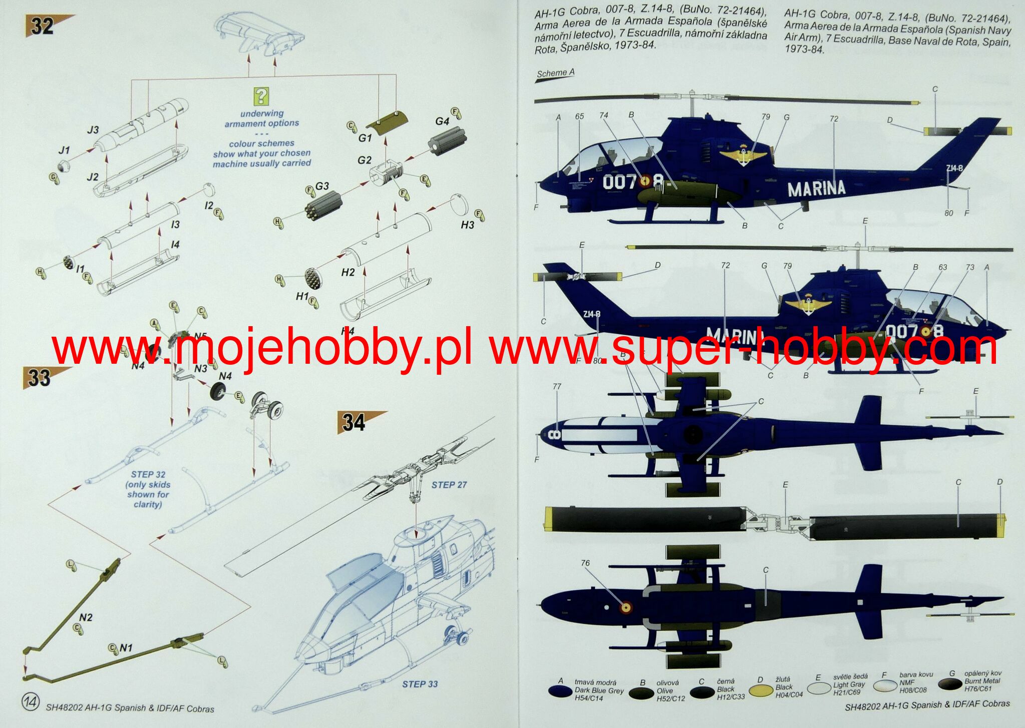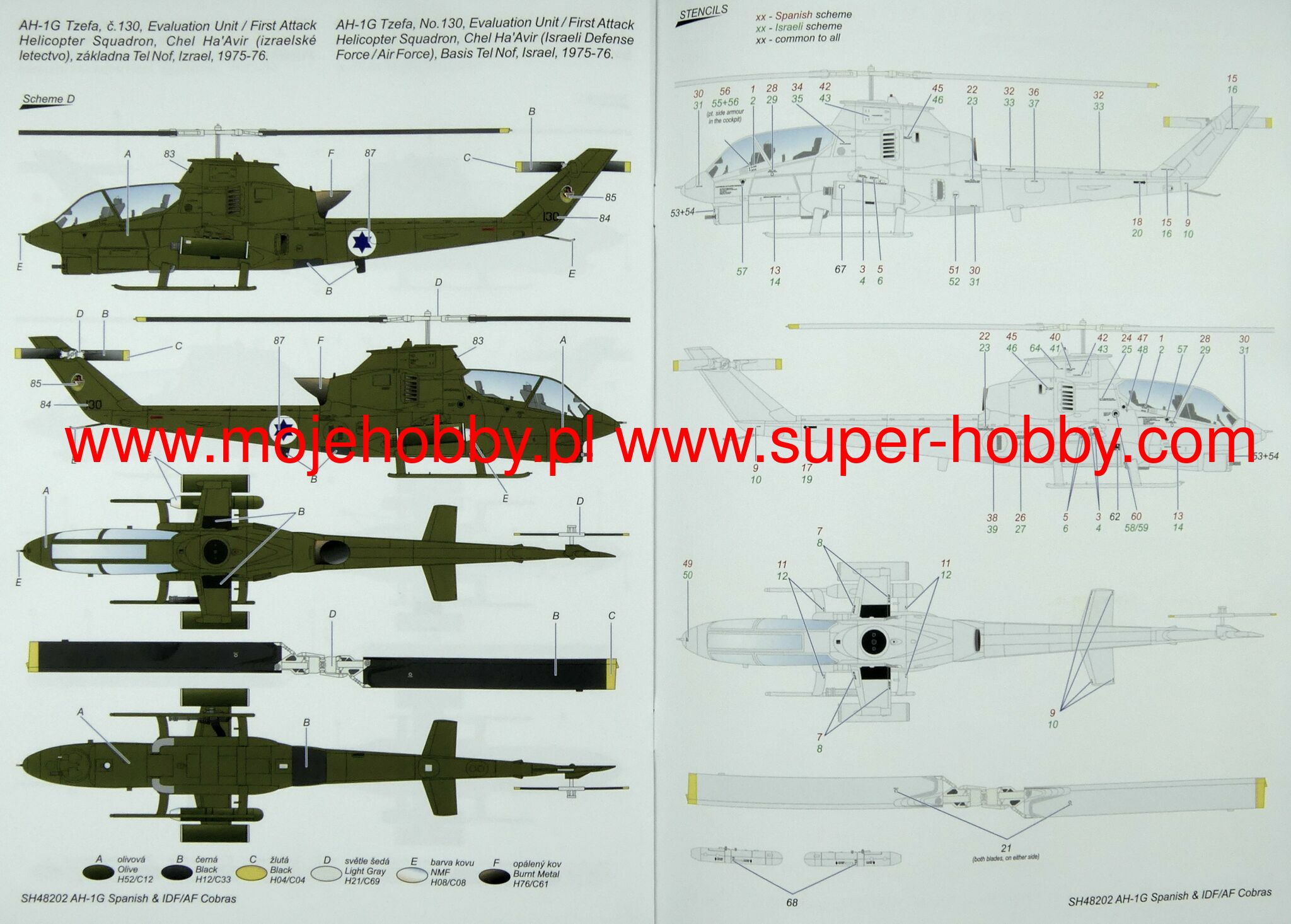 The AH-1 Cobra helicopter (Bell 209) is an attack helicopter in the classic layout, using many components of its "big brother" UH-1 Huey. The first flight of the AH-1 prototype took place on September 7, 1965 and the helicopter entered mass production in the same year. During the Vietnam War, 1,126 machines of the G model were produced, of which 279 were lost in combat. Due to the very high reliability of the structure, small side profile and good performance, the helicopter remains in service to this day in the US Marine Corps. The AH-1 allowed the US Army to fully implement the theoretical assumption of airmobile infantry ("air cavalry") through the fire support of landing infantry units. Today, the AH-1 Cobra is primarily used against an armored celon. From 1965, several versions of this successful helicopter were created, including: AH-1G (basic version), AH-1J (two-engine version), AH-1Q (version armed with TOW missiles). Technical data: Top speed: 333 km / h; maximum range (depending on version): 507-574km, armament: fixed-1 20mm M197 three-barrel cannon, slung rockets, guided missiles, unguided missiles and cannon pods.