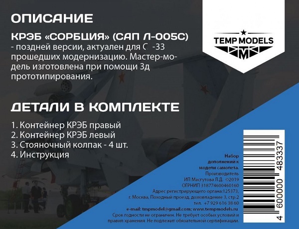 48333 ДОПОЛНЕНИЯ ИЗ СМОЛЫ КРЭБ СОРБЦИЯ ОКБ С-33 (1/48) продается в 1 магазинах. Выберите подходящий Вам интернет-магазин и перейдите по ссылке «В магазин».