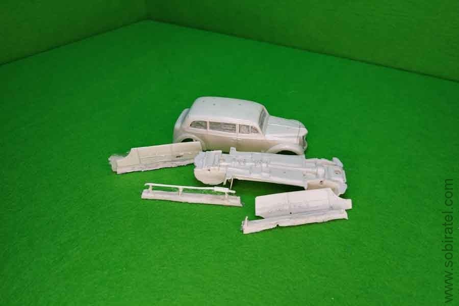 Набор для доработки масштабной модели в масштабе 1/43. Сделан из жидкого литьевого пластика на основе полимеров. Легко обрабатывается абразивными материалами (надфиль, наждачная бумага, канцелярский нож). Устойчив к ультрафиолету. Цвет материала может отличаться от изображения. Детали поставляются не обработанными (как на фото) и без остекления, возможны вкрапления воздушных пузырьков, которые без труда шпаклюются. Донор - модель: Москвич 400-420 журнальной серии Автолегенды СССР №5, №64 или Автомобиль на службе №6. В комплект входят: кузов, днище, выхлопная труба, дверные карты. Цвет деталей может отличаться от представленных на фотографиях. Описание и изображение производителя.