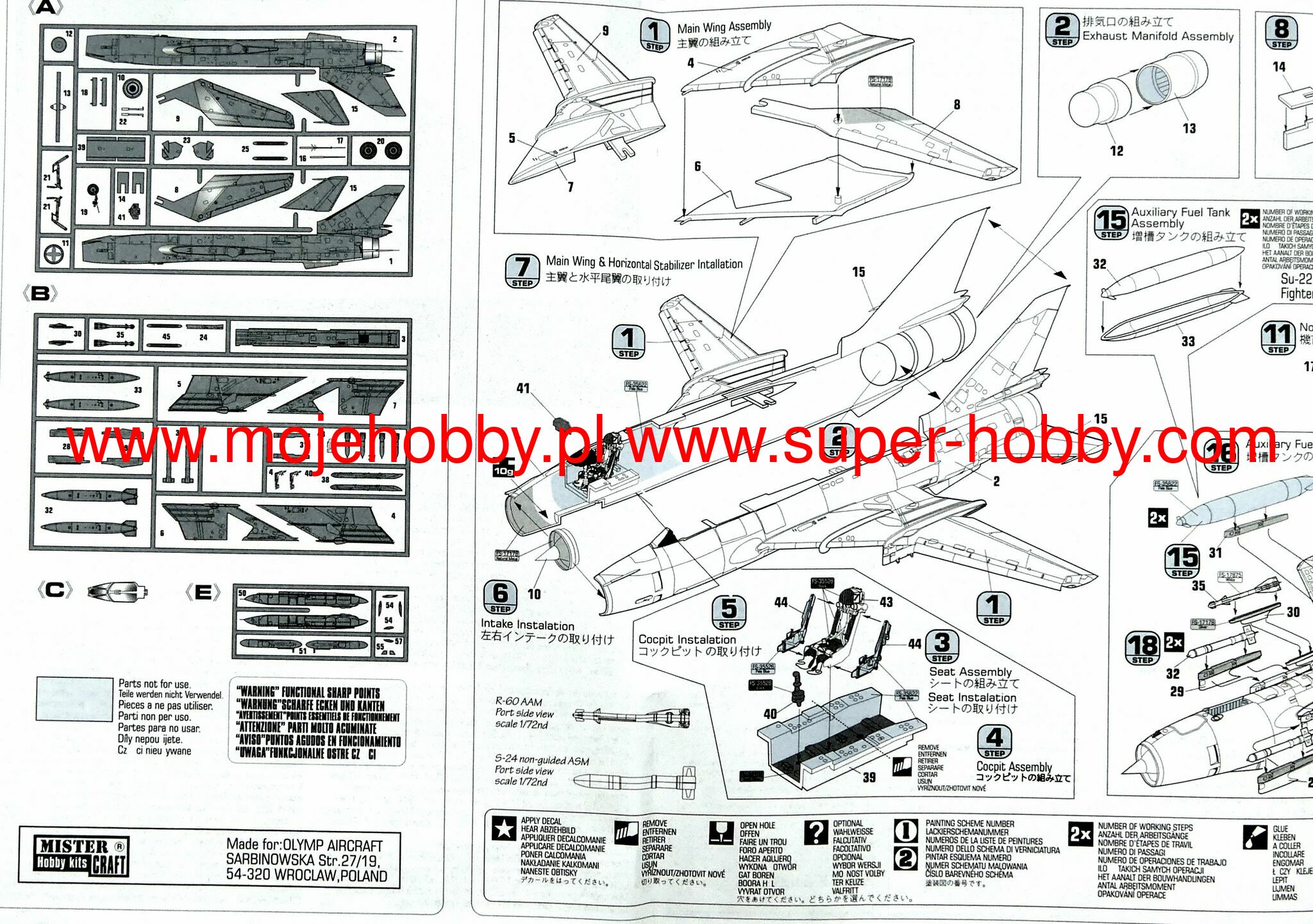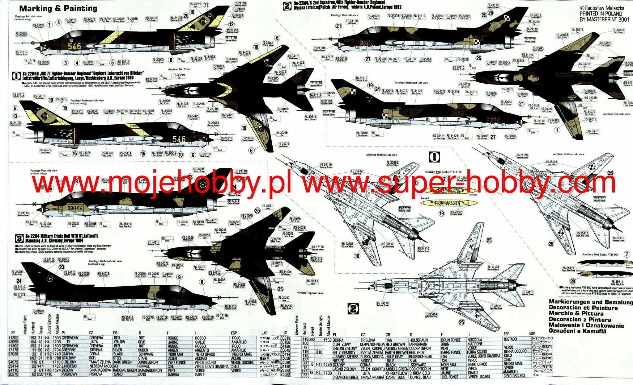 Note: Comany Mistercraft frequently changes, without any notice, the decals that come with the model, so they may differ from the photos and descriptions on our website. If you need a specific version, please let us know about that by entering the appropriate notice in the comments field when placing the order. The Sukhoi Su-22 is a Soviet single-engine attack bomber with variable wing geometry, a development of the Su-17 machine, mainly for export. The first export version is the Su-22K, with the Tumański R-29 engine. A two-seater version was quickly created, designated as Su-22M3U. The Su-22M4 model, which was first sold in 1979, was the most sold. It had a significantly modernized avionics with laser devices for distance measurement and targeting (Klon-54 device). It was the standard attack aircraft of the 1980s of the Warsaw Pact countries. Technical data: length: 19.02m, wingspan (with folded wings): 10.02m, height: 5.1m, maximum speed: 1.7Ma, rate of climb: 230m / s, maximum range: 2250km, armament: fixed - 2 NR-30 30mm guns, slung - up to 4070 kg of cargo