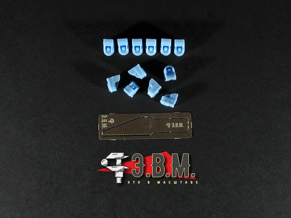 Такие отбойники ставились на все танки и САУ с (примерно) августа 44-го года и до конца производства, на корпуса всех заводов. Набор универсальный, подходит для сборной модели ИС-2 любого производителя. Набор так же включает пилку для отделения детали от литьевой прибыли.