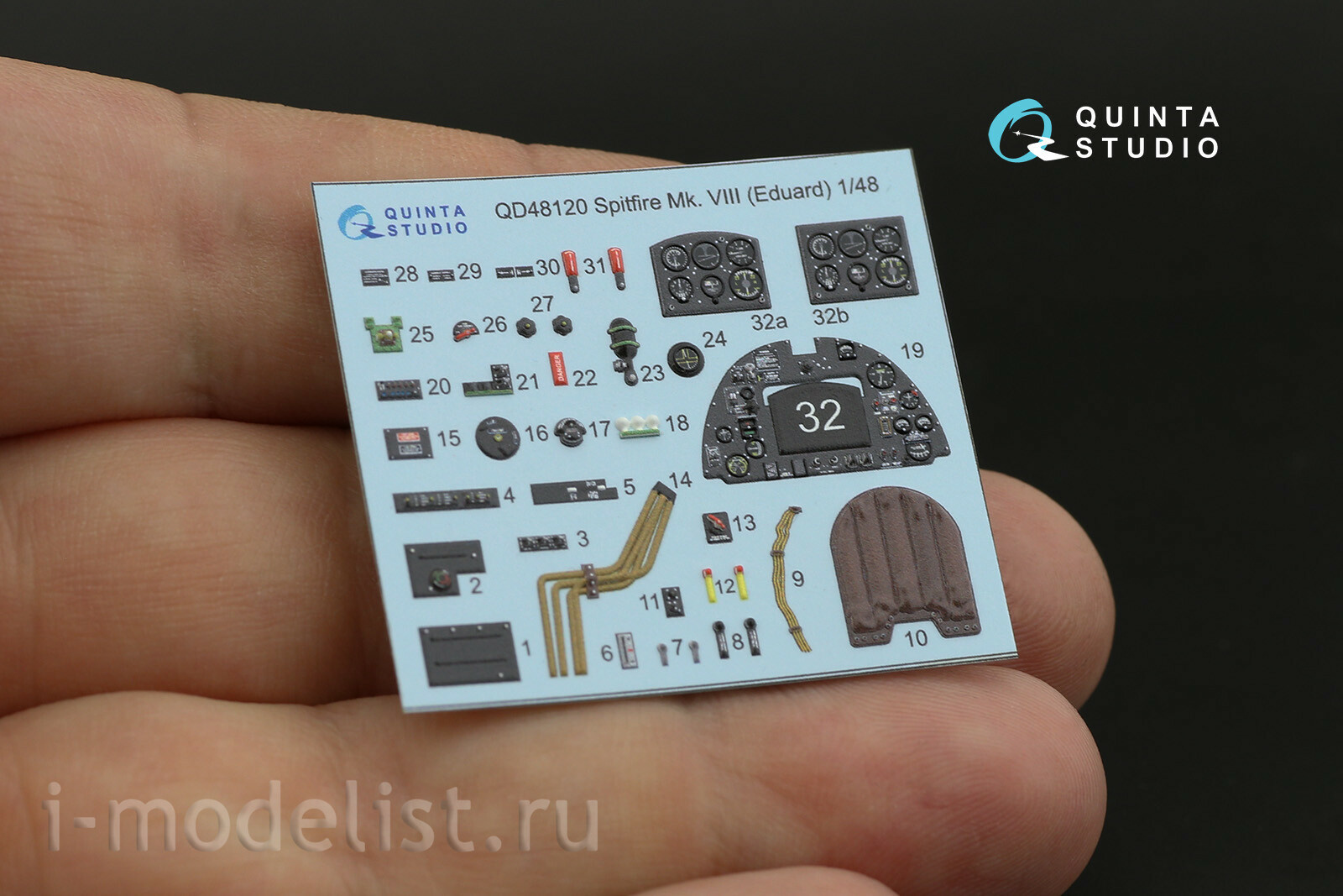 QD48120 QUINTA STUDIO 1/48 3D ДЕКАЛЬ ИНТЕРЬЕРА КАБИНЫ SPITFIRE MK.VIII (EDUARD) quinta studio 1/48