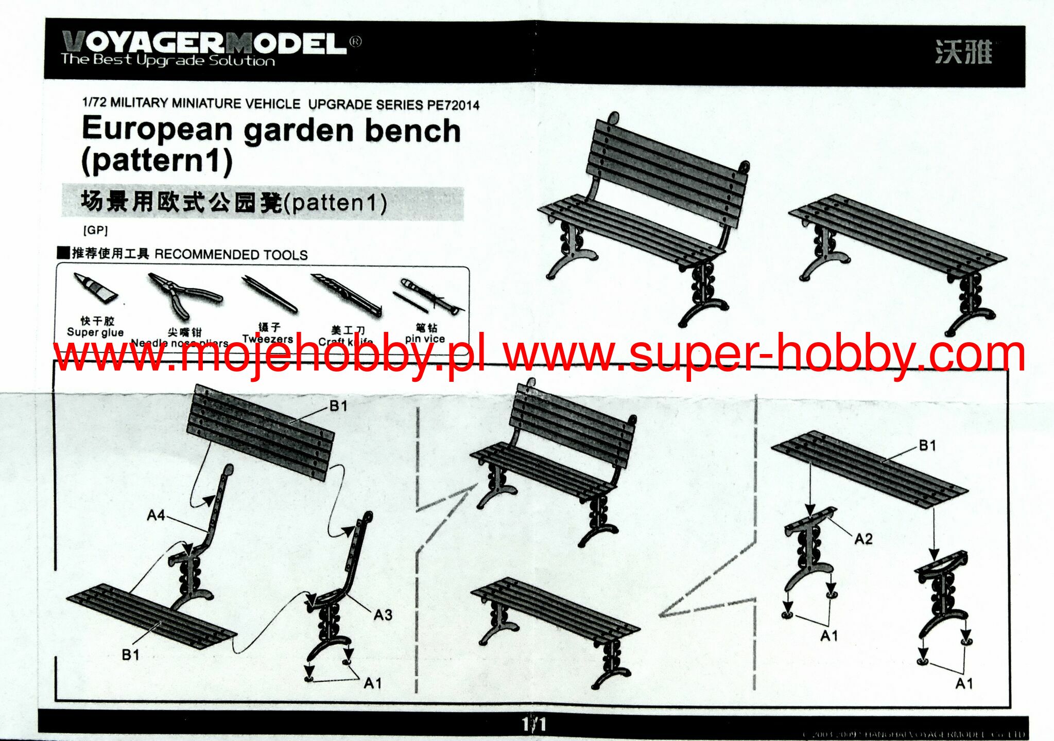 PE72014 EUROPEAN GARDEN BENCH PATTERN 1 voyager model 1/72