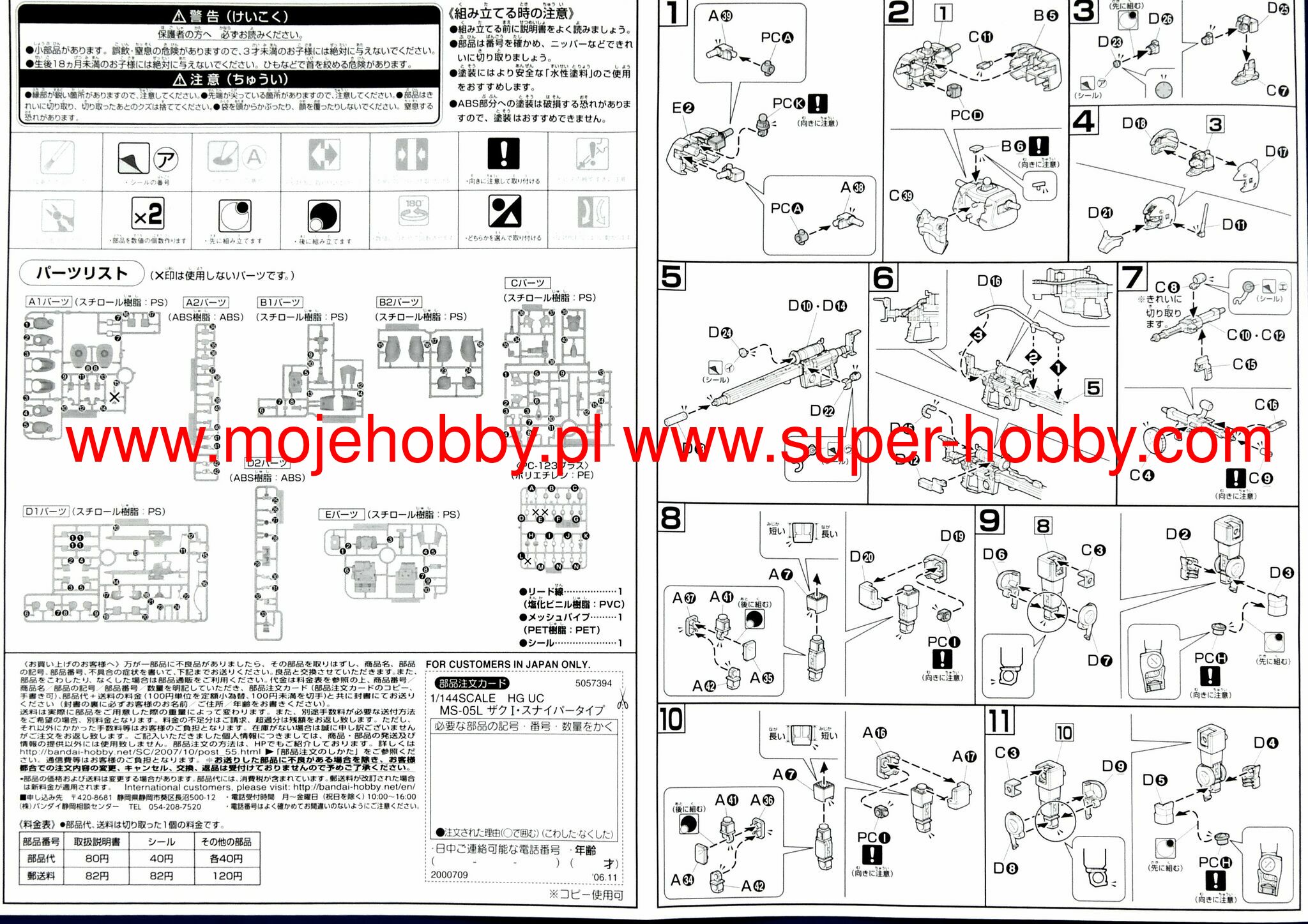 HG - High Grade Models presented in 1990 in 1:144 scale. These were groundbreaking models in the series because their quality was significantly improved compared to previous models and they had a full range of movements. Assembly Difficulty: Medium Number of elements: over 150+ Size: 13cm Contents of the package GUNPLA Model Assembly instructions Short instruction manual in Polish Stand* Stickers to enhance the model *Not all models include a stand Special features of the HG series: Scale 1/144, model size 130 mm, over 150 elements to assemble, medium level.