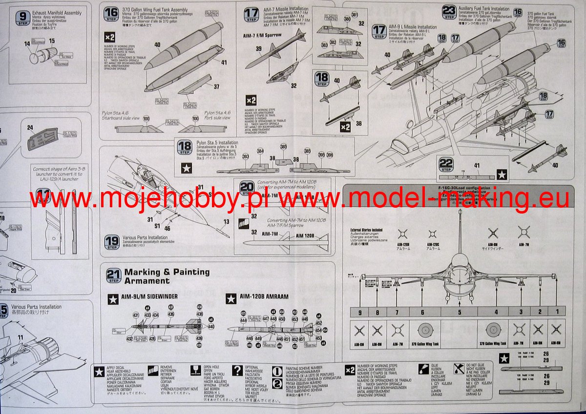 Note: Comany Mistercraft frequently changes, without any notice, the decals that come with the model, so they may differ from the photos and descriptions on our website. If you need a specific version, please let us know about that by entering the appropriate notice in the comments field when placing the order. The General-Dynamics F16 Falcon is an American single-engine, multi-role light fighter and stormtrooper. Work on the F-16 project began in 1971 at the General Dynamics concern (which in 1993 was part of the Lockheed Martin giant), entering the competition for a light multi-purpose fighter (LWF) for the US Air Force. The YF-16 prototype first flew on February 2, 1974. A breakthrough in technical terms was the use of a computerized electric fly-by-wire control system, which made it possible to reduce the area of the wings and tail, and thus reduce the weight of the entire aircraft. The F-16 was the first fighter in the world to use such a system. The first versions were to a large extent made of aluminum alloys (about 83% of the total structure), but with time they gave way to composites. The different versions of the F-16 are powered by three versions of the engines: Pratt-Whitney F-100-PW-200, General Electric F110-GE100 and Pratt-Whitney F-100-PW-2020. The "brain" of the guidance system was the APG-66 radar, later replaced by the APG-68 (V) radar. It is worth noting that the YF-16 design turned out to be so successful that it won not only the LWF competition in the USA (in competition with the Northrop YF-17 aircraft), but also won the centenary contract for a multi-role fighter for European NATO countries. His rivals were the Dassault Mirage F.1 and SAAB J-37 Viggen machines. Serial production of the F-16 began in 1975. It was also attended by European NATO countries for which it was an injection of new aviation technologies. Final assembly was performed in the USA, Belgium and the Netherlands. The first serial F-16A Fighting Falcon was flown on August 7, 1978. It is an assault version of the F-16, intended primarily to counter ground targets. The F-16 also proved itself in combat, with a series of air victories in the war in Lebanon (1982) and during the Operation Desert Storm (1991). By the end of the 20th century, more than 4,000 of this successful aircraft had been produced. There were six basic versions of the F-16, marked as A, C, E (single-seater) and B, D, F (two-seater). On the basis of these six models, numerous upgrades are created, most often associated with the replacement of avionics, marked as "Block". Since 2006, the F-16 also serves in the Polish aviation. The Polish Ministry of Defense decided that the F-16 would be the backbone of the modernized air force, rejecting offers from Dessault and SAAB, although in this case they were Mirrage F2000 and JAS-39 Grippen fighters. Undoubtedly, the highest sum proposed by the American company as part of the so-called offset transaction. Technical data: Maximum speed: 2,170 km / h, rate of climb: 254 m / s, maximum ceiling 15240m, maximum range: 3890km, armament: fixed - one 20mm six-barrel M61A-1 cannon, suspended - up to 9275 kg of cargo.