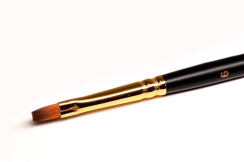 Плоская кисть с укороченной выставкой из синтетики под колонок применяется во всех видах живописи. Анодированная алюминиевая обойма надежно защищает ворсинки изделия и прочно скрепляет с черной матовой ручкой. Прямоугольная форма кисти позволяет использовать инструмент двумя способами: можно работать вершинкой для получения контуров и коротких мазков, а также всей плоскостью пучка для заливки широкими полосами однородного тона.