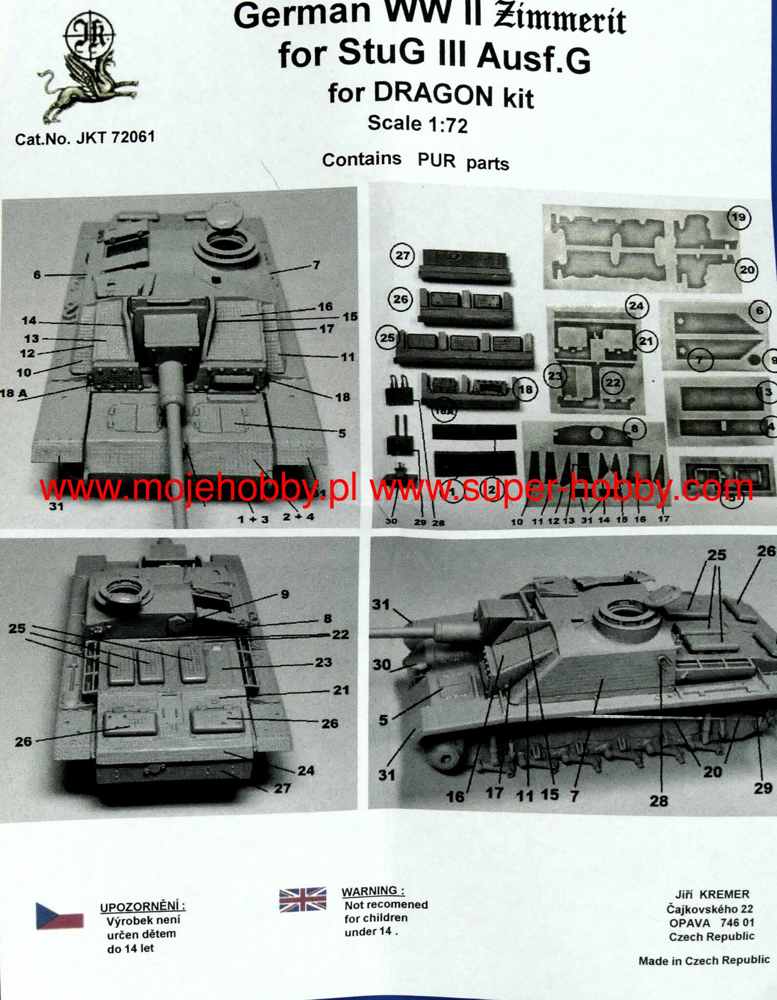 JKT72061 ZIMMERIT FOR STUG III AUSF. G - MIAG (FOR DRAGON KIT)