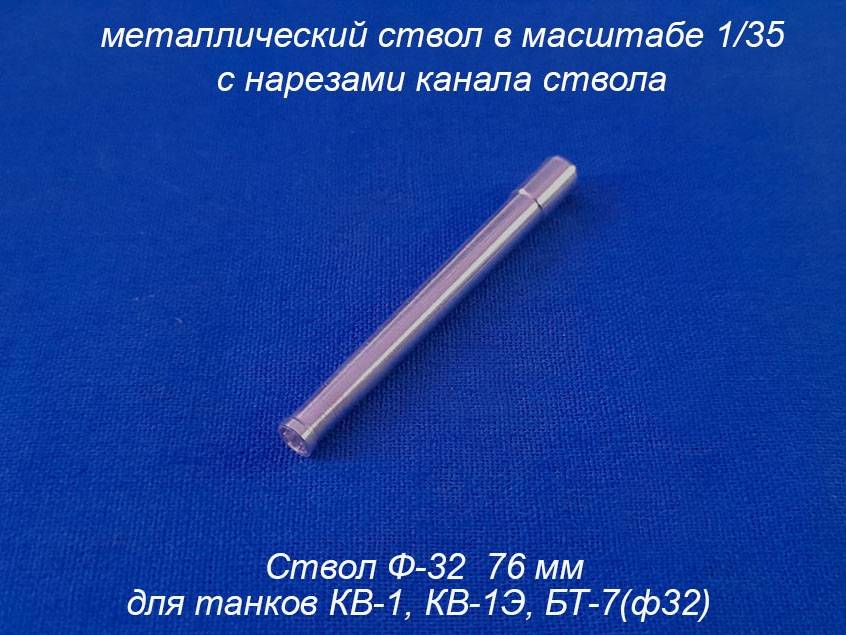 Металлический ствол пушки Ф-32 в масштабе 1:35 - имитация пушки калибра 76 мм для военной техники времен Второй Мировой Войны. Чаще всего использовался на танках КВ-1, КВ-1Э, БТ-7 (Ф-32). Для создания модели танка Бт-7 (ф-32) меняем ствол пушки БТ-7А на ствол Ф-32.