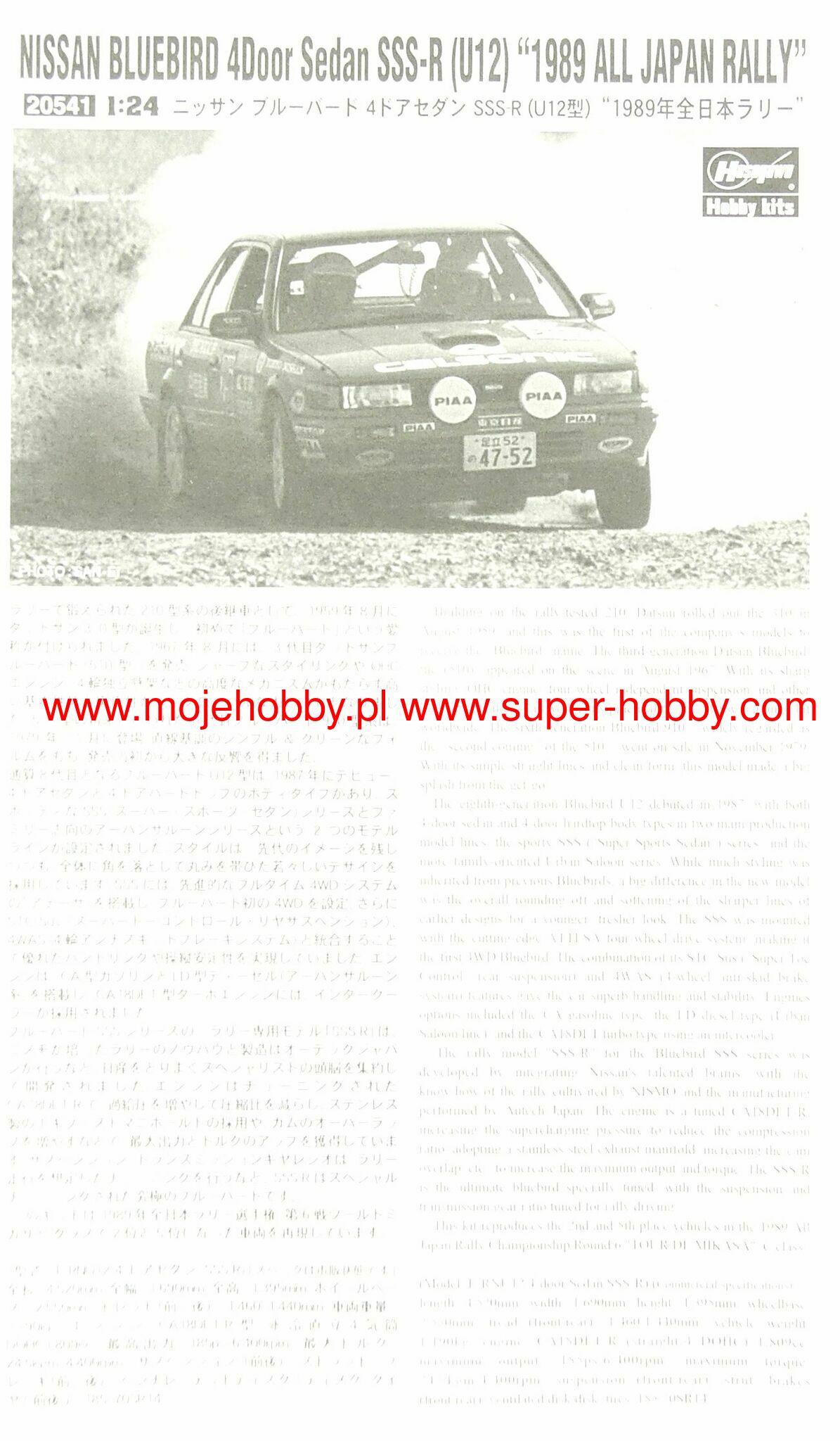 Купить NISSAN BLUEBIRD 4DOOR SEDAN SSS-R (U12) 1989 ALL JAPAN RALLY HASEGAWA (1/24)