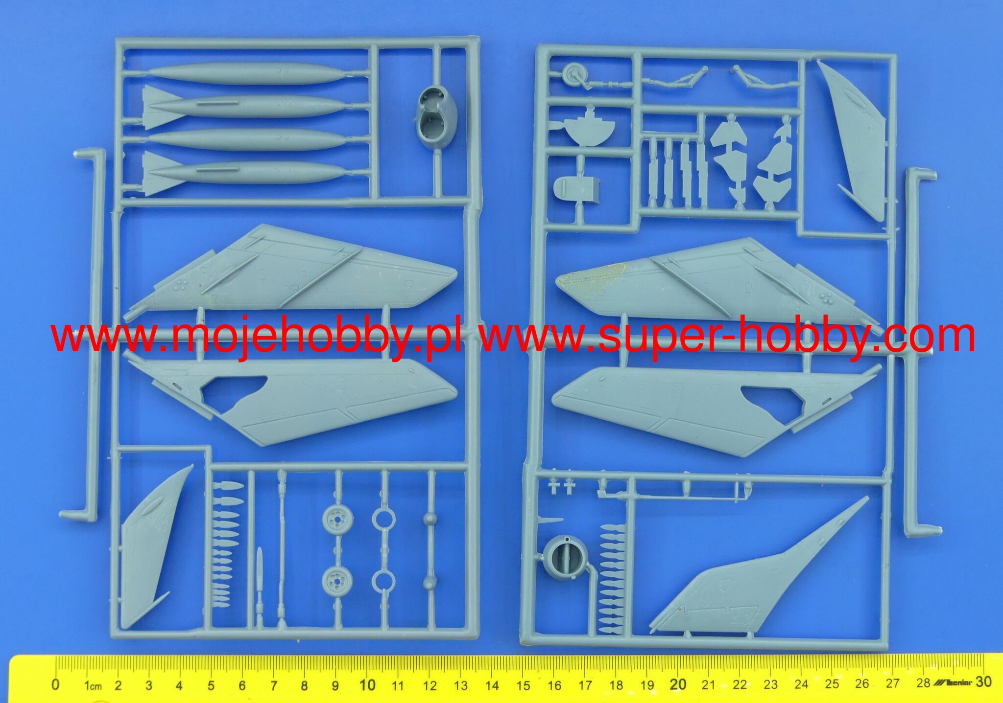 The Mikojan-Guriewicz MIG-19 built in the early 1950s was the first mass-produced supersonic fighter plane. The experience gained in the design and implementation of new technologies in this aircraft has greatly helped the constructors in the construction of the next versions of the MiG aircraft. The MiG-19 in serial production was marked with the symbol SM. The SM-9/1, flown on January 5, 1954, became a direct model for the serial MiG-19. The plane did not yet have a plate horizontal tail. Therefore, the first series of MiG-19 planes had a classic tail. The MiG-19 flight tests with a plate tail continued throughout 1955. Soon after, the serial production of the MiG-19S aircraft, derived from the SM-9/3 prototype, began. Airplanes for various purposes come directly from it. Built in 1956, the MiG-19SW high-altitude fighter. MiG-19R reconnaissance aircraft and a short series of MiG-19SF aircraft reaching speeds of 1560 km / h. The second development line consists of airplanes built on the basis of the SM-7 prototype, equipped with the RP-5 radar on-board station. New interceptors have been developed. The SM-7/2 prototype turned into the MiG-19P aircraft, then the MiG-19PF and the MiG-19PG with the "Gorizont-1" station were built (it was used to guide the aircraft at the target according to the ground command point). In a short series, the MiG-19PU plane with additional rocket accelerators was built. The SM-7 / 2M prototype, equipped with the RP-2U radar station and armed with 4 RS-2U (K-5) guided missiles, was manufactured under the designation MiG-19PM. A variant of the MiG-19PM aircraft was equipped with the MiG-19PMŁ telemetry device "Łazur". MiG-19 planes were used in the Warsaw Pact countries: the USSR, Bulgaria, Czechoslovakia, East Germany, Poland, Romania and Hungary, as well as in China, Egypt, Indonesia, Iraq, Pakistan, Syria and Cuba. The production of the aircraft was started in Czechoslovakia (MiG-19S as S-105) and in China, where the planes were initially produced under the license under the designation J-6, and then their own designs were developed on their basis. Technical data: length: 12.54m, wingspan: 9m, height: 3.9m, maximum speed: 1455km / h, speed of climb: 180m / s, maximum range: 1390km, maximum ceiling 17500m, armament: permanent - 3 cannons NR -30 caliber 30 mm, suspended - the most common were 4 Vympel K-13 air-to-air missiles.
