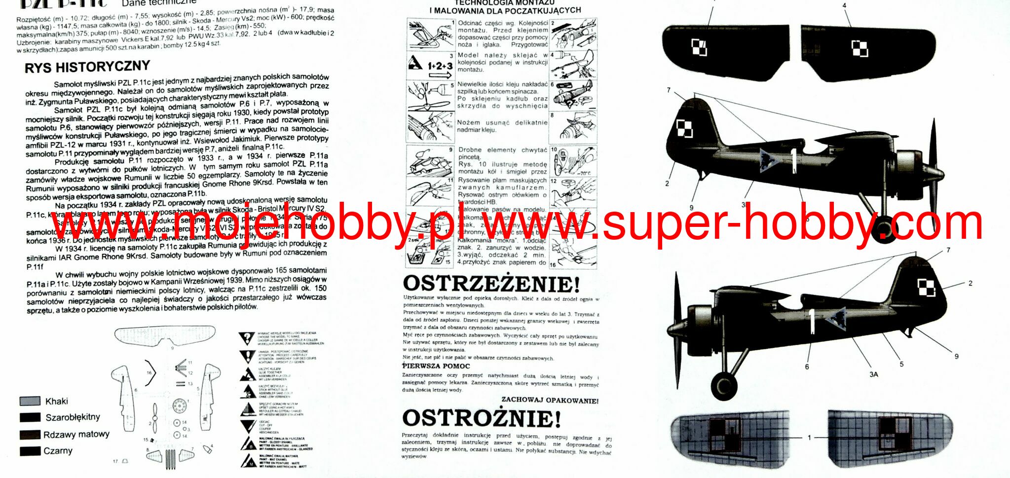 The PZL P.11a (the so-called eleven) is a Polish, single-engine fighter plane with a metal structure with Puławski wings, a classic tail and a fixed landing gear. The flight of the prototype took place in 1931, but serial production continued in 1937-1939. The first serial version is the PZL P.11a powered by the Bristol Mercury IV S2 engine with a power of 550 HP. However, it was treated as a transitional version and only 50 were ordered. The most famous version of the "eleven" - PZL P.11c - appeared in the summer. It had an improved fuselage, wings and a vertical stabilizer. It all improved the aerodynamics of the plane. The drive unit has not changed. The interest in the construction was expressed by, among others, Romania, where 95 units of the licensed PZL P.11 were manufactured at the IAR plants. At the outbreak of the war, all versions of the P.11 were much slower than their German opponents, but at the same time had greater maneuverability, high rate of climb and a less emergency engine than German planes. They had many victories over the enemy during the September campaign, mainly as part of the Pursuit Brigade. Technical data (version P.11c): length: 7.55m, wingspan: 10.72m, height: 2.85m, maximum speed: 367km / h, rate of climb: 14.5m / s, maximum ceiling: 8000m, range maximum: 550 km, armament: fixed - 2 machine guns wz.33 cal.7.92 mm.