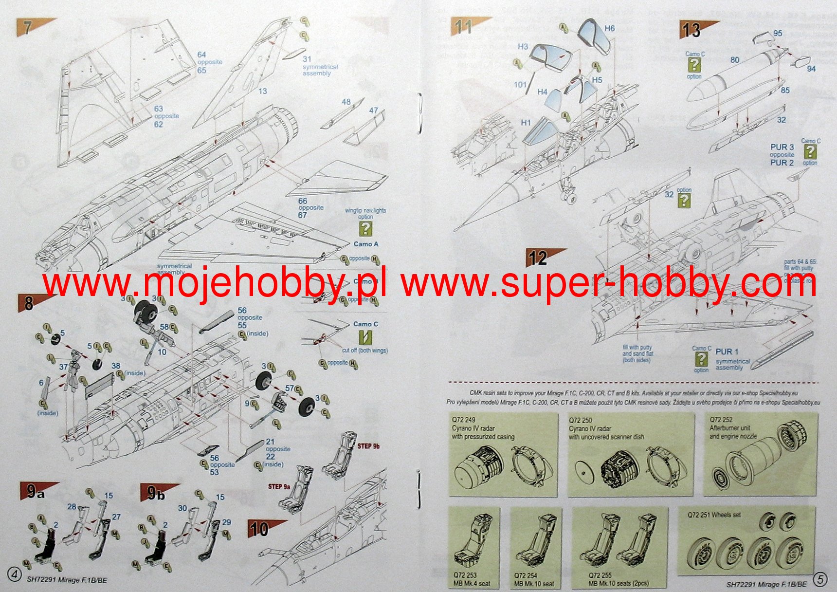 The Dassault Mirage F.1 is a French, single-engine, multi-purpose fighter with a half-shell high wing structure, with wings equipped with slots and lapel pins with a classic tail tip. Mirage F.1 became the heir to the successful Mirage III / V series. The first prototype flew on December 23, 1966. He recorded a number of records - 2.12Ma at an altitude of 11,000 meters and 1,300 km / h at low flight altitudes. The Mirage F.1 required strips of 500 to 800 meters in length for the operation. The new plane had a similar size and lift surface as the Mirage III, but thanks to the use of integral tanks it took up 40% more fuel. The F.1 airplane was characterized by the minimum time necessary for take-off. This was possible by simplifying the operation and allowing the air transport of all necessary ground equipment. The recovery time between operations was 15 minutes. Thanks to the on-board power supply and high-pressure refueling system, the refueling time was only 6 minutes. The Thomson-CSF Cyrano IV radar had 80% greater range than the Cyrano II with MirageIII. When the pilot selected the target manually, the radar automatically followed him. Several main versions of the Mirage F.1 were produced, including F.1C, a classic fighter version, adapted to attack on land targets, introduced into use in 1969. The next version is the F.1B, used as a two-seat school machine (delivered since 1980). Also interesting was the Mirage F.1CT model, i.e. an attack aircraft, the prototype of which appeared in 1991. In total, about 770 copies of all versions were made. It was exported to many countries, including Iraq, South Africa, Greece, Spain and Morocco. Technical data (version F.1C): length: 15.23m, wingspan: 8.4m, height: 4.5m, maximum speed: 2.2Ma, climb speed: 213m / s, maximum range (with overhead tanks): 3300 km, maximum ceiling 2000 m, armament: fixed - two 30 mm DEFA 553 cannons, suspended - up to 4000 kg of cargo.