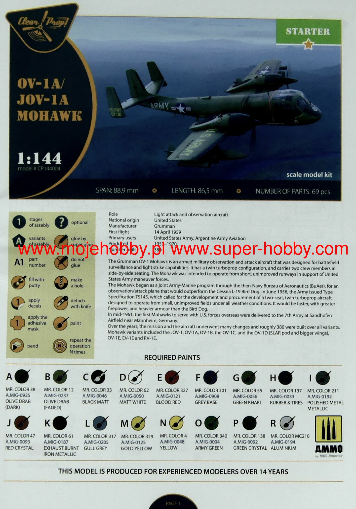 The Grumman OV-1 Mohawk is an American reconnaissance and observation aircraft with STOL (short take-off and landing) properties serving in the United States Army. The flight of the prototype took place on April 14, 1959. The aircraft was produced in several versions (from A to D), which differed from each other in terms of engine power, wingspan and, above all, various radio-electronic equipment. Revision A was powered by a pair of Lycoming T53-L-3 engines, which in revision C were changed to Lycoming T53-L-701. The OV-1 Mohawk was used extensively during the Vietnam War and to a lesser extent during Operation Desert Storm. OV-1 users outside the US are Israel and Argentina. Technical data (OV-1D version): Maximum speed: 724 km / h, climb speed: 17.5 m / s, maximum ceiling 7620 m, maximum range: 1520 km.