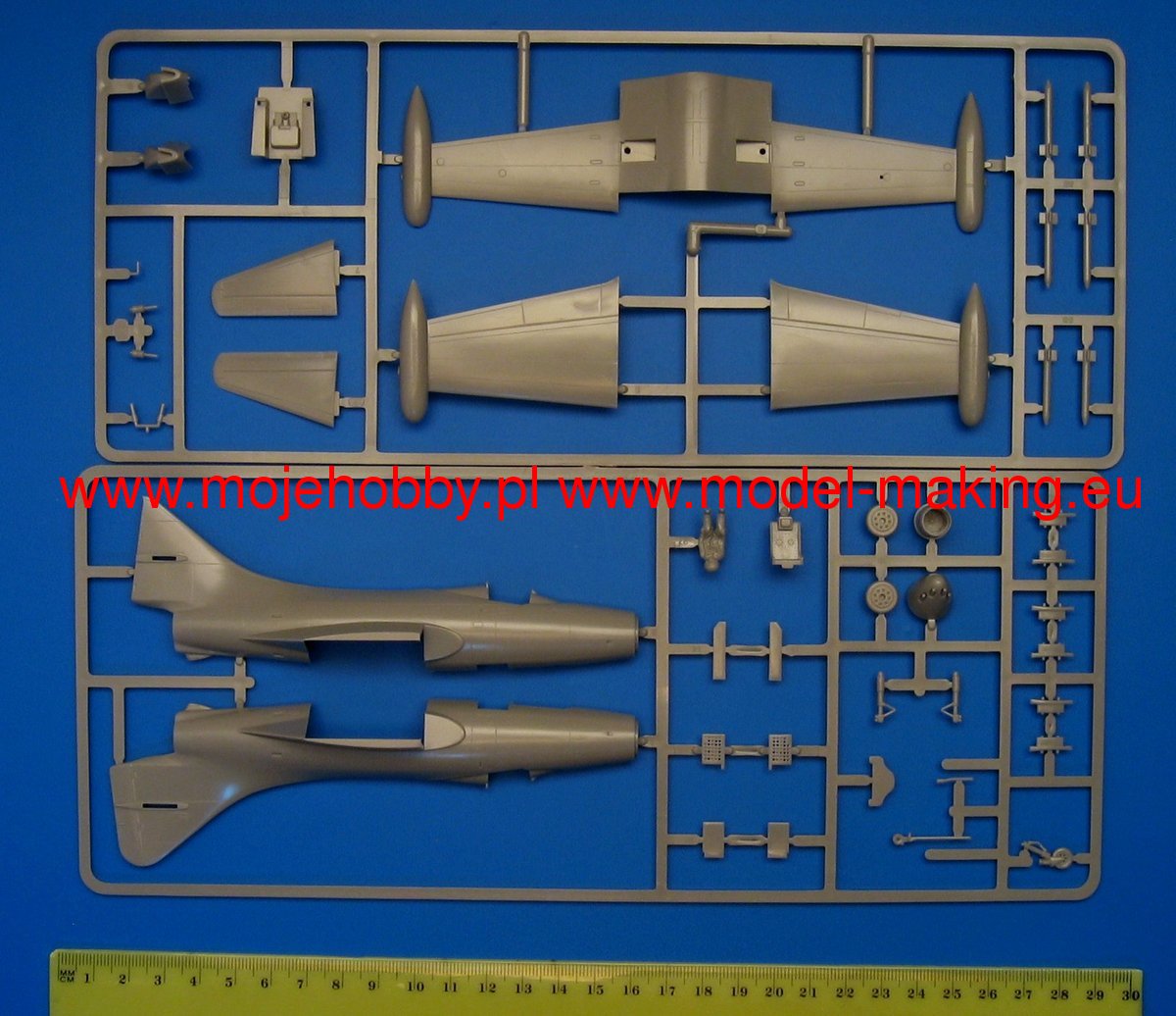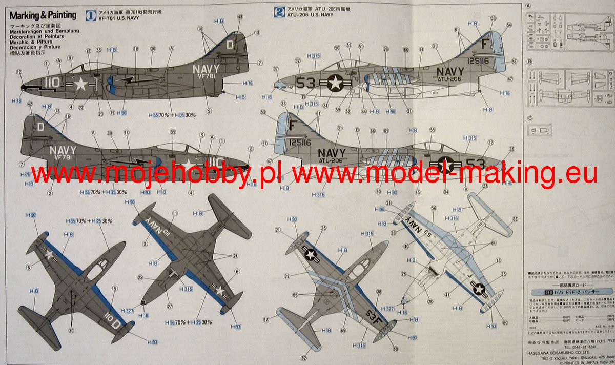The Grumman F9F Panther is an American single-engine on-board fighter plane. The flight of the prototype took place in 1947, and it entered the F9F linear units just before the outbreak of the Korean War. The serial F9Fs were powered by licensed Rolls-Royce RB.44 Tay engines (American designation: Pratt-Whitney J48-P-2). In total, 1,382 copies of this successful on-board plane were created. It took an active and active part during the Korean War, where the pilots fighting on it recorded several killings of Mig 15. The F9F became the main US Navy fighter and the main assault machine of the Marine Corps during the conflict. Future astronauts: John Glenn and Neil Armstrong flew them. The planes were withdrawn from the line in 1956. Technical data: Maximum speed: 925 km / h, speed of climb: 26.1 m / s, maximum ceiling 13,600 m, maximum range: 2,100 km, armament: fixed - 4 20mm M2 cannons, suspended - up to 908 kg of bombs or rockets.